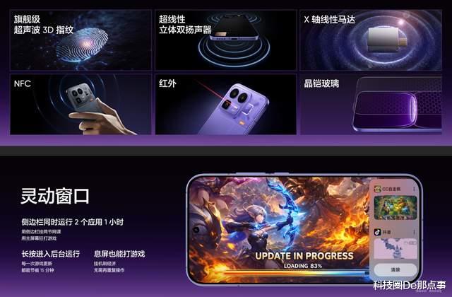 背面的觉醒光环系统交互各种场景。电竞场景下,游戏击杀与关键节点触发对应光效,将屏幕内的战斗成果延伸至机身背面,强化感官反馈。日常场景下,智慧弹码功能让手机翻转即自动弹出付款码并亮起光效,扣码付款更便捷;来电、消息、充电等场景也有对应光效提示,即使屏幕朝下也能获取关键信息。此外还有翻转幸运色等趣味玩法,带来丰富的个性化体验。