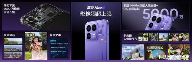 影像方面,真我Neo8后置双摄方案,搭载同档唯一5000万像素超光影潜望长焦+5000万像素主摄(索尼IMX896传感器),3.5倍光学变焦与7倍无损变焦,最高支持120倍超清变焦,带来价位段罕见的望远能力,既能拍远也能拍清。人像拍摄方面,多焦段人像镜头包覆盖从1倍到4倍经典人像焦段,带来海报级超清人像照片。