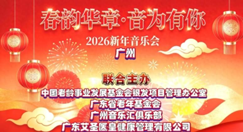冬日暖阳贵如金,洒落大地万物新。2026年1月18日下午由中国老龄事业发展基金会银发项目管理办公室、广东省老年基金会、广州音乐汇俱乐部、广东艾圣医皇健康管理有限公司联合主办的“春韵华章 音为有你”2026新春音乐会在广州番禺区艾圣医皇大厦隆重举行。出席此次音乐会的领导和嘉宾有:中国老龄事业发展基金会银发项目管理办公室主任、广东省老年基金会党支部书记党小平、顾问骆秋勤、副主任蒋开福、李雪峰、王海燕、广东艾圣医皇健康管理有限公司董事长雷美媛、中国国际文化促进会广东分会秘书长、广州中弘文化传播有限公司董事长、原空政文工团导演、广州音乐汇俱乐部名誉会长管宏,广东省助老促进会执行会长、广东省旅居养老专家委员会专家、广州音乐汇俱乐部会长阎家圆。广州音乐汇俱乐部执行会长王建国、马新、李秀勤、邓美莲、办公室执行主任邓穗春、执行秘书长周丰梅、凌云以及来自广州各区的演出团队,共计二百余人,大家用欢快的音乐奏响了对新年的祝福。