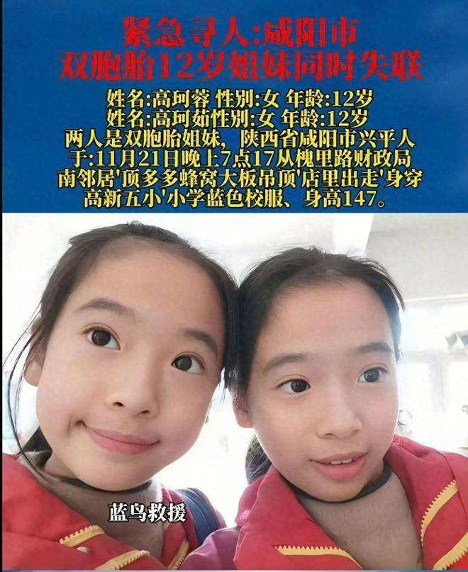 事情要从 11 月 21 号傍晚说起。高先生家在兴平市槐里路开了家小店,当天双胞胎姐妹放学后像往常一样回家吃饭,没看出半点异常。妈妈洗完碗转身的空当,原本在店里写作业的两个孩子不见了,起初以为是去附近找同学玩,直到天黑透了还没回来,一家人这才慌了神。