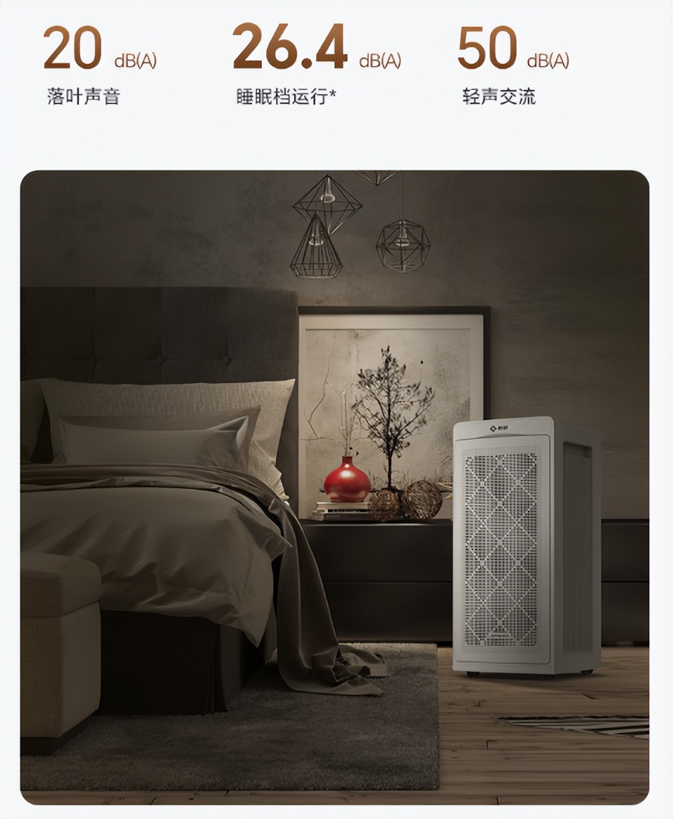 速净模式噪音仅 52dB(相当于日常对话声),睡眠模式低至 26.4dB: