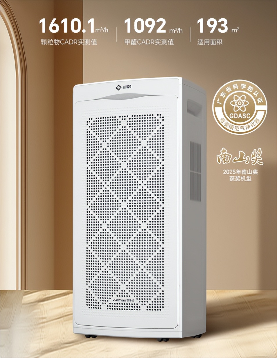 总结:大平层闭眼冲,单台搞定无死角净化对大平层家庭来说,新颐 A8 的核心价值是 “单台全覆盖 + 无死角净化”—— 双涡旋引擎实现 19 次 / 小时换气,1610.1m³/h 高 CADR 支撑全域洁净,不用额外搭配多台净化器,省空间、省电费、省维护。