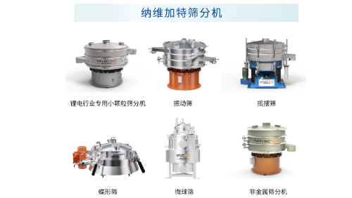 筛分设备的选型应基于生产目标与物料特性。不同物料在粒径、比重、形状和含水率上存在差异,是否易团聚、产生静电等都会影响筛分效率。针对不同物料特性和工艺要求,选择匹配的筛分技术是实现高效生产的关键。纳维加特的产品矩阵涵盖从常规颗粒到难筛分微米级物料的筛分设备,可满足不同行业的筛分需求。