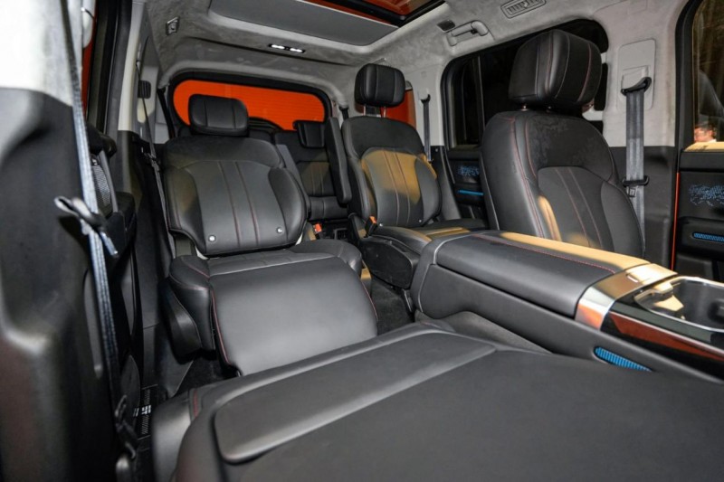 在空间表现上,纵横G700重新定义了豪华越野的空间哲学。凭借3225mm的超长车内纵向空间与高达64.9%的“空间得房率”,纵横G700为每一位乘员赋予了奢适的移动尺度。第二排992mm的腿部空间与1627mm二排横向宽度,确保全员皆可舒展自如。更令人倾心的是,放倒二排座椅即可解锁一个完整的“移动休憩空间”,配合恒温驻车空调与多色氛围灯,顷刻将座舱化为静谧安然的“陆地头等舱”,让旅途中的每一次停驻,都成为极致享受的私享时刻。