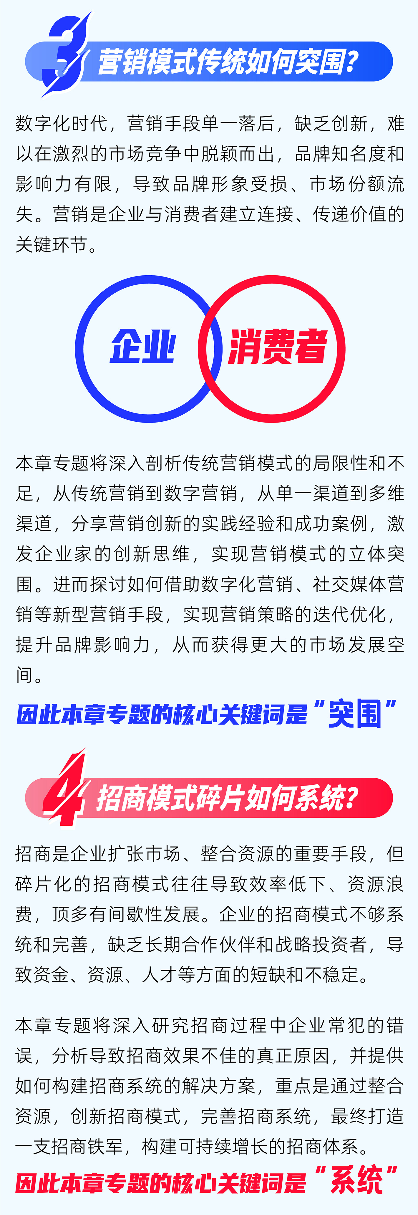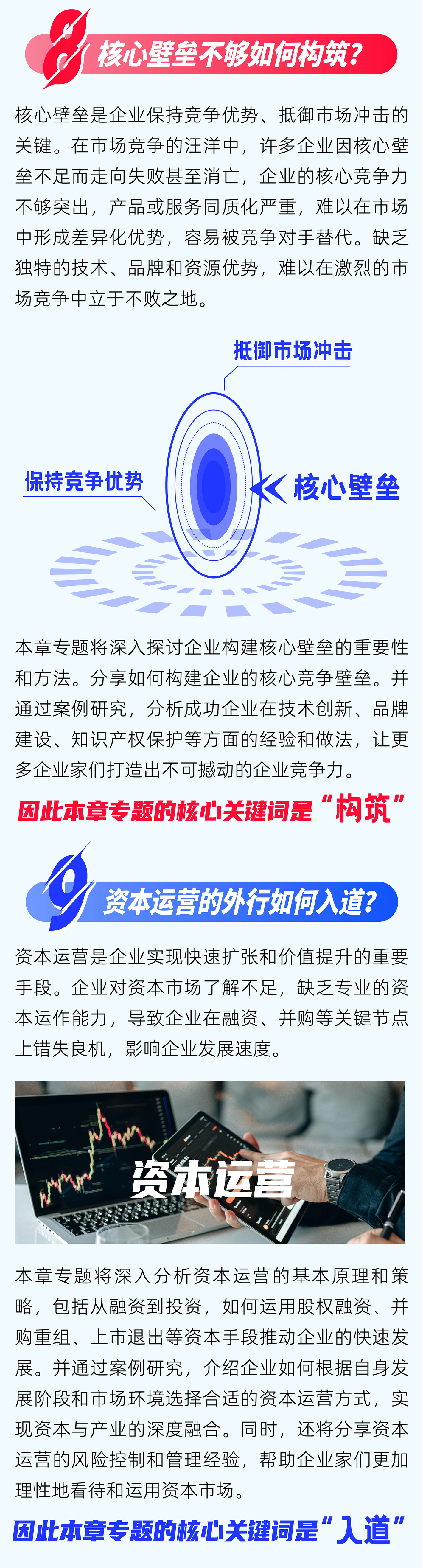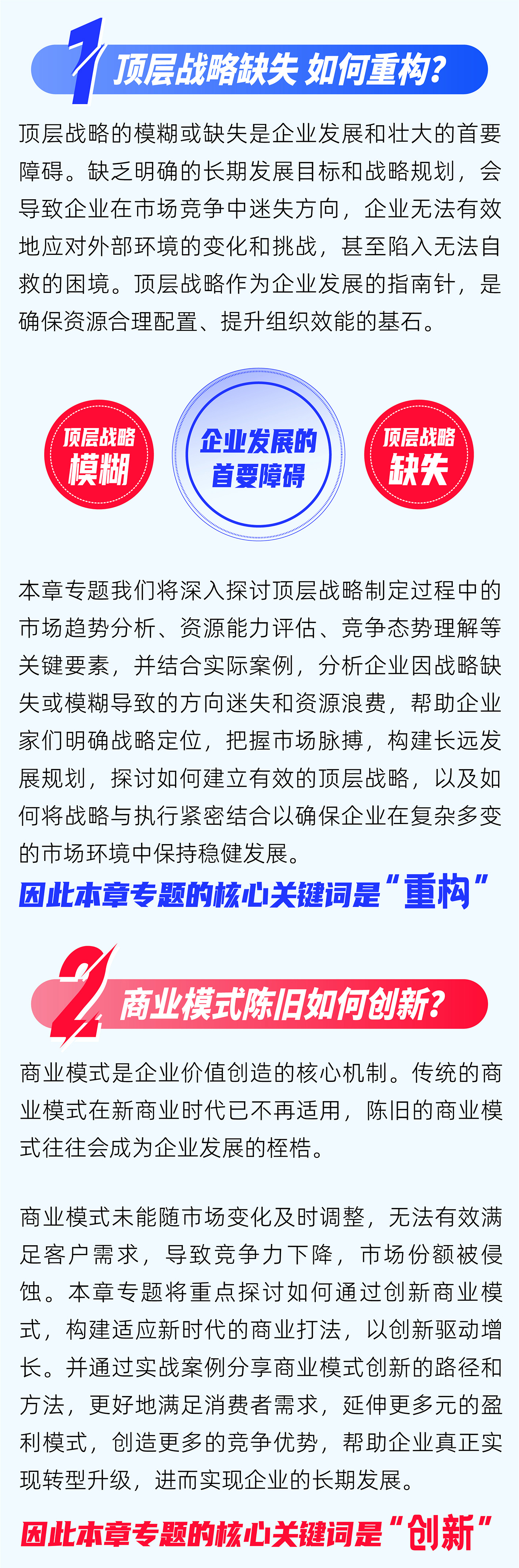 整个系列专题分为九大模块,涵盖了企业在新商业时代中可能遇到的转型升级挑战、创新发展受限、增长突围瓶颈及资本运营短板等众多挑战,并提供了切实可行的解决之道,值得所有企业家朋友们反复咀嚼,进而融会贯通于企业发展的各个阶段。