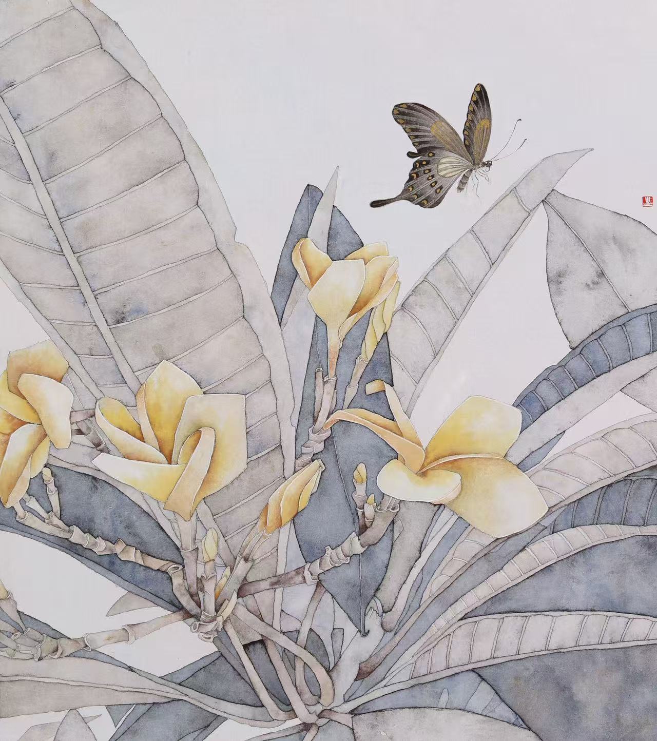 《百花清逸》系列里的每朵花,都扎根于西双版纳的泥土,2019年的夏天,我们一群画者晨出午归,顶着湿热的暑气,用蚊香抵挡着驱蚊液都拦不住的蚊子大军,沉醉在花的世界里。上午追着晨光在户外写生,下午回到室内仔细整理画面。这个系列,记录了那年夏季版纳盛放的花和我追梦的心。
