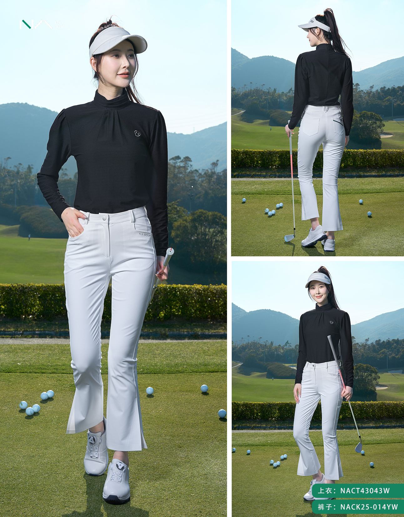 高尔夫裤装:女士也可选择高尔夫裤装,版型多为修身或直筒,展现利落干练的形象。材质和颜色选择与男士球裤类似,但可根据个人风格适当加入一些时尚元素,如裤脚的收口设计、精致的皮带扣等。
