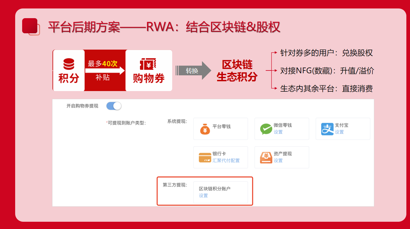 这套模式最聪明的地方,就是靠数据把“消费-让利-补贴-收益”的链条串得明明白白。为了防刷单,给商家设了每月收款的上限;为了控进度,会调整补贴期数和增速;甚至对接了淘宝、京东的CPS拉新渠道,把外部流量也拉进体系里。到了后期,积分还能转成股权、NFG,还能当社交红包转送给朋友,分润就成了能长期持有的资产。以前那种“你赚我就亏”的消费死循环,就这么变成了“你消费我受益,我推广你赚钱”的共赢局面。
