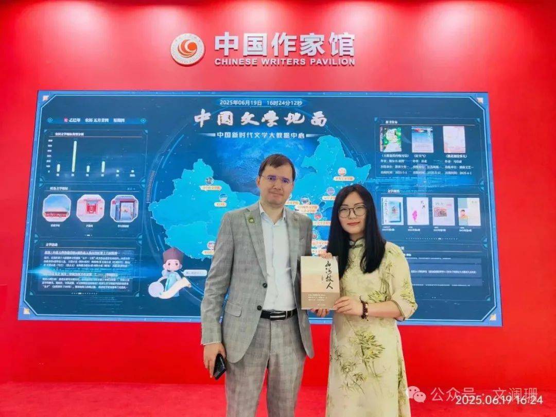 2025年6月19日,在第31届北京国际图书博览会上,作家文澜珊偶遇一位俄罗斯人,并赠苦心力作《山河故人》给他,作为文化交流。事后才知,这位俄罗斯人是知名汉学家、翻译家罗季奥诺夫(Alexey Rodionov)。在6月17日,他刚获得中国出版界面向海外的最高奖项“第十八届中华图书特殊贡献奖”。