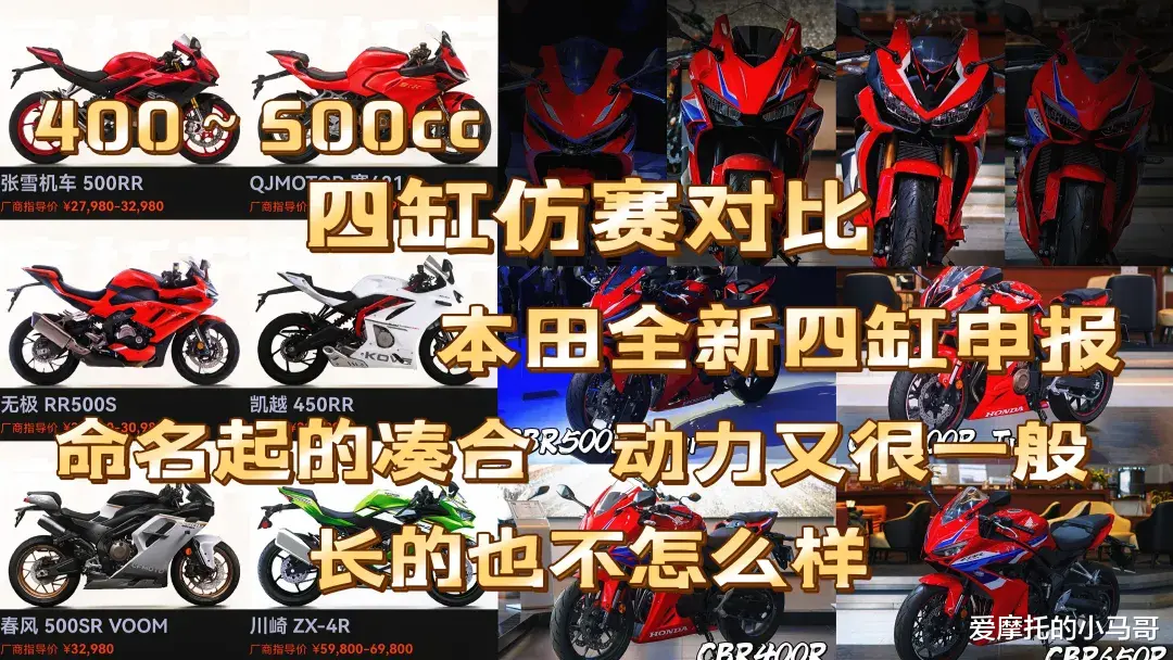 最近几期一直都在聊第402批工信部中的新车,虽然数量不多,但各个都挺有话题性也挺有乐子的,比如本期要聊的这款本田在此批次申报的最新四缸仿赛——本田CBR500R Four,这车虽然算不上参数炸裂或造型惊艳,但其身上的 “槽点” 和 “迷惑操作”,反倒更有讨论度。