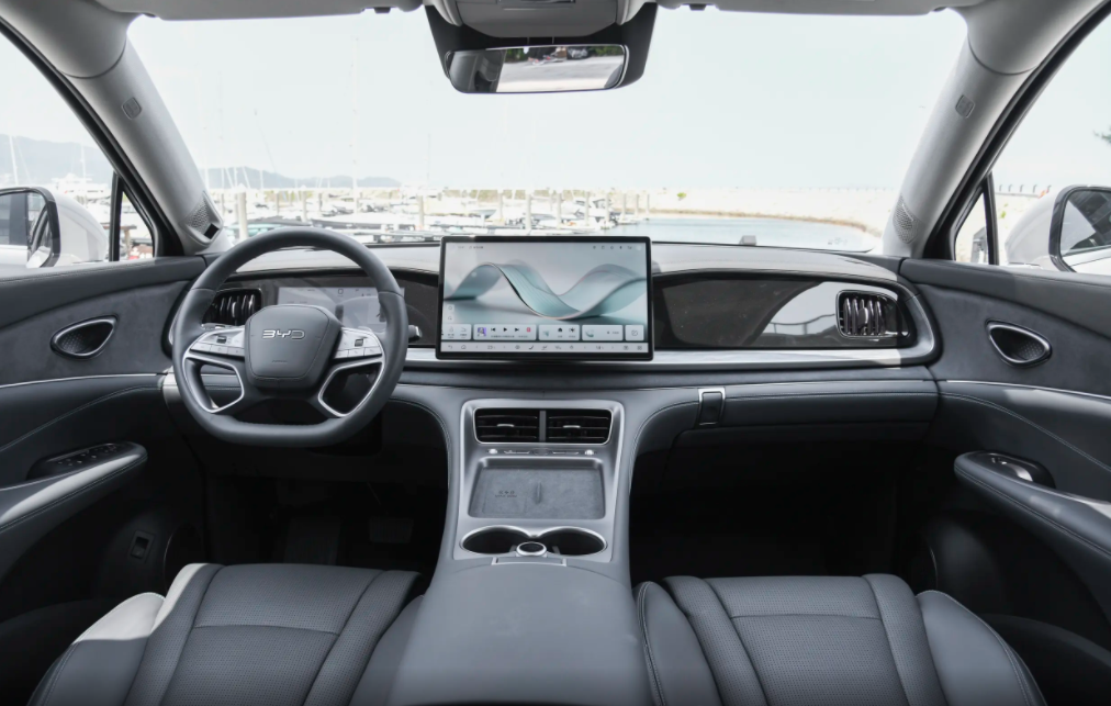 海狮07 DM的座舱设计也不再是套公式的设计了,像中控台的设计,该车便采用了对称式的设计语言,并且在显示屏幕的风格上,官方还设计了一种名为“冰川风格”的设计,就是在10.25吋数字仪表和15.6吋多媒体控制屏幕中间拉了一条横贯面板,相比只有两块屏幕的中控台,海狮07 DM的中控台设计在视觉效果上给人的感觉将更加的饱满。其次,在AI语音识别系统方面,海狮07 DM也是加入了大模型,它可以通过ONEID账号记住车主的偏好,让车辆越用越好开。其次,副驾驶追剧,主驾驶看导航,该车的车机系统也能分开进行处理,这无疑进一步增强了我们的用车体验。