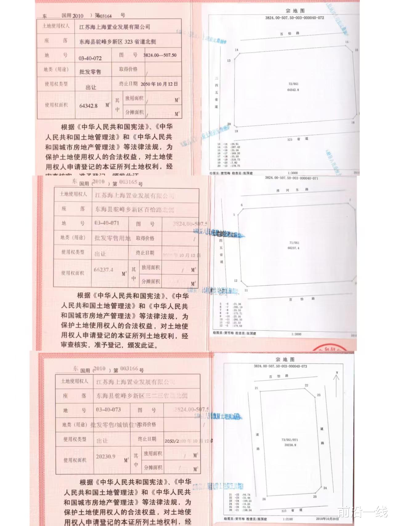 作为县政府重点招商引资项目,海上海公司在江苏土地交易网竞得驼峰乡西侧150528平方米净地,分A、B、C三块宗地,其中商业用地占比超八成,住宅用地兼容商业配套,总出让金2710万元、契税81.3万元全额缴清,三本国有土地使用证也顺利办结。