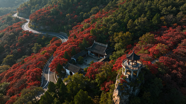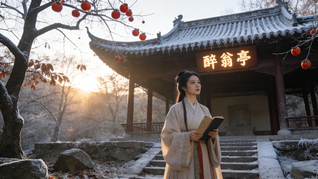 诗画胜景:文韵与山水的交响琅琊山的初冬,是欧阳修“风霜高洁”的传世意境具象化的模样。11月下旬的山间,林木褪去浓荫,换上橙黄与赤红的盛装,黄栌如燃、银杏铺金、松柏凝翠,层叠交织成流动的油画。沿“九孔桥—醉翁亭—会峰阁”的步道上行,脚下的石阶被落叶轻覆,踩上去“沙沙”作响,与远处的涧水潺潺相映成趣。醉翁亭前,千年银杏的金黄叶片铺满庭院,朱红亭柱与青灰瓦檐在霜色中更显古朴,亭内“醉翁之意不在酒”的匾额熠熠生辉,风过亭角,铜铃轻响,仿佛穿越千年听见欧公与民同游的欢语。登会峰阁远眺,“环滁皆山也”的壮阔尽收眼底,薄雾如纱缠绕山巅,座座峰峦若隐若现,正是“野芳发而幽香,佳木秀而繁阴”的冬日变体。