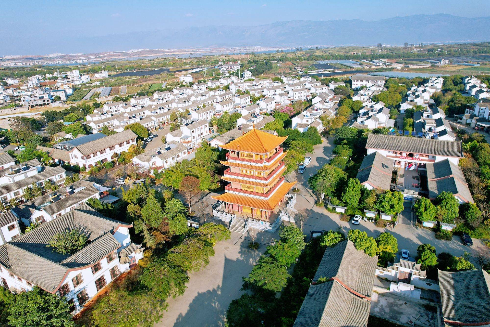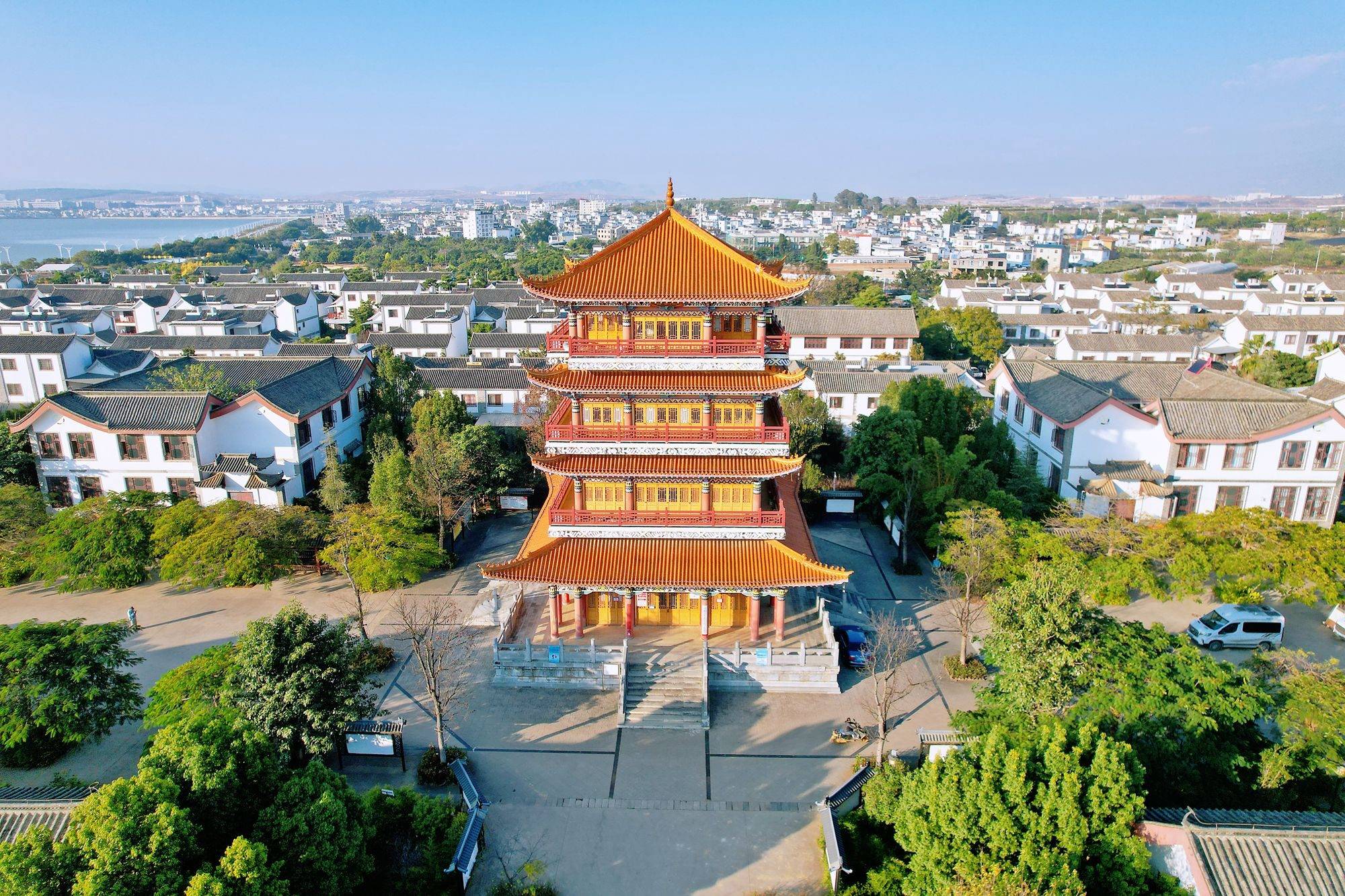 走在小镇里,从很远的地方就能看到标志性建筑尼苏塔,名为台子阁。阁楼高四层,飞檐翘角,配色明朗鲜艳,带着少数民族热情的气质,在蓝天的映衬下既巍峨壮丽又不失秀美。