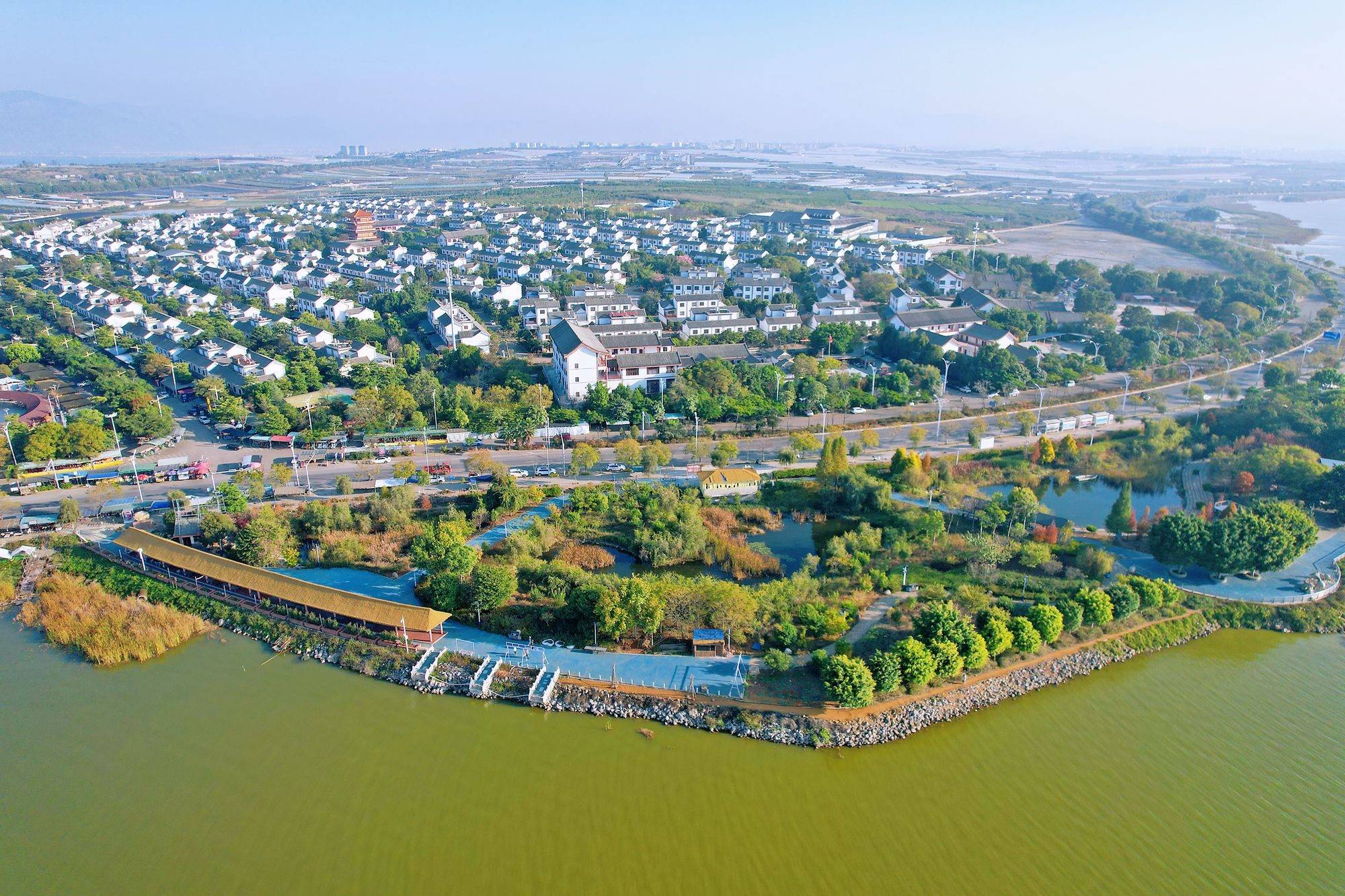 大屯海烟波浩渺,从高处俯瞰,沿“海”公路平坦宽阔,让整座小镇都有了海边渔村的悠闲气质,一派舒适安逸。
