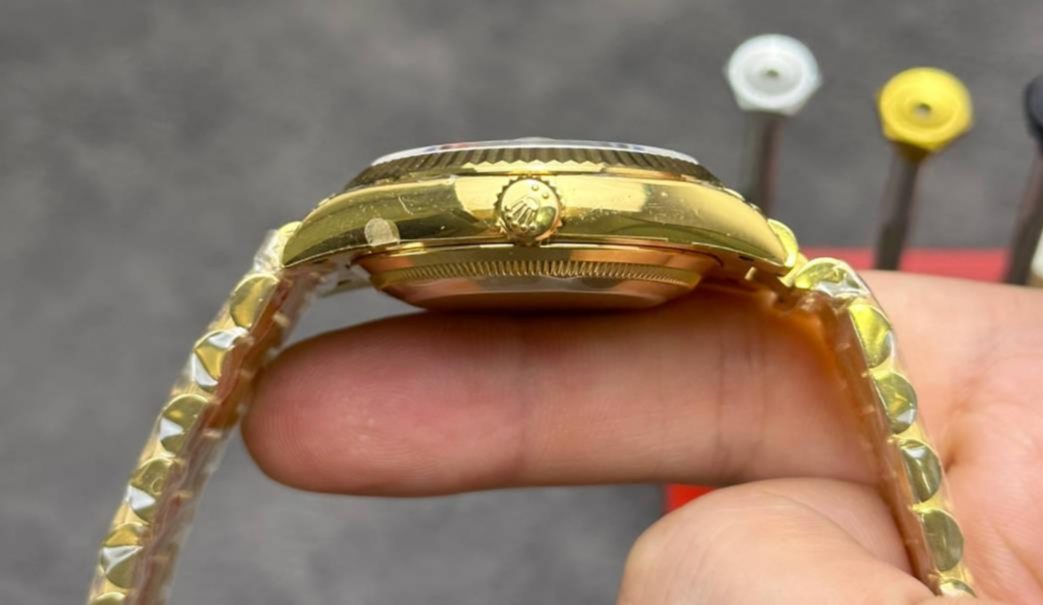 手表整体外观方面,18K金的质感已经非常接近原版,日常的生意应酬和社交场合,不用担心被打脸。另外,18K包金工艺可以确保佩戴七八年,都不用担心磨损褪色。