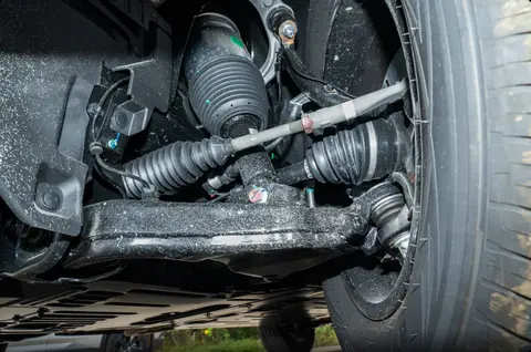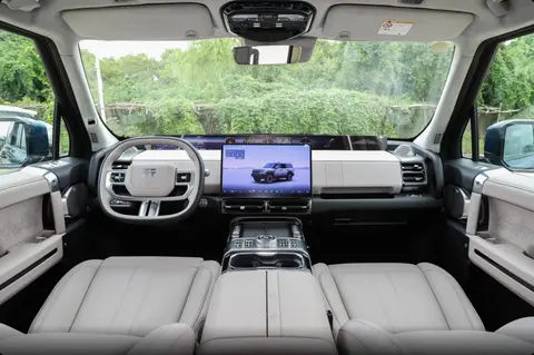 这车的核心部件是IP68级防水,发动机设计也很讲究,采取正时罩盖整体式设计,减少进水风险。点火线圈密封得严实,气门室罩盖设有排水设计,发电机和变速箱结合面也配了密封垫,整体防水细节非常完善。官方数据说,非空悬状态下涉水深度能达到900毫米,升级空气悬架升高底盘后,涉水深度最高能达970毫米,和市面上售价动辄过百万的路虎卫士OCTA差不多。我的试驾车是享境版,带空气悬架,特地把车底升高后,驾驶穿过一段大约800毫米深的积水路段,那感觉相当靠谱,发动机平稳运转没抖动,车机系统也没弹出任何故障提示。过完水直接回到马路上,车辆行驶模式无缝切换,丝毫没影响。后来还了解到,这次穿江,车上800伏航行推进器跟陆上混动系统是分开的,动力电池容量40.8千瓦时独立供电,水里和陆上动力不串联,所以才能完成零故障横渡。