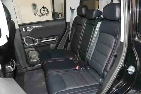 初在4S店见到实车时,其“方盒子”造型的硬派气质十分鲜明:平直的车身线条没有多余弧度,外凸轮眉的金属饰条触感硬朗且边缘无毛刺,规整的车窗边框缝隙均匀,用手按压玻璃边缘无松动晃动。悬浮式车顶的黑色饰板与车身漆面衔接自然,我重点体验的白黑撞色款漆面细腻顺滑,烟紫色实车在不同光线角度下渐变光泽更明显,触感无颗粒感,比图片中呈现的质感更扎实。车门把手握感饱满,拉动时阻尼适中,没有过松或过紧的卡顿,关门时的“砰”声低沉,无廉价空洞感,这种设计在硬派与家用间取得了很好的平衡,不会和日常场景脱节。