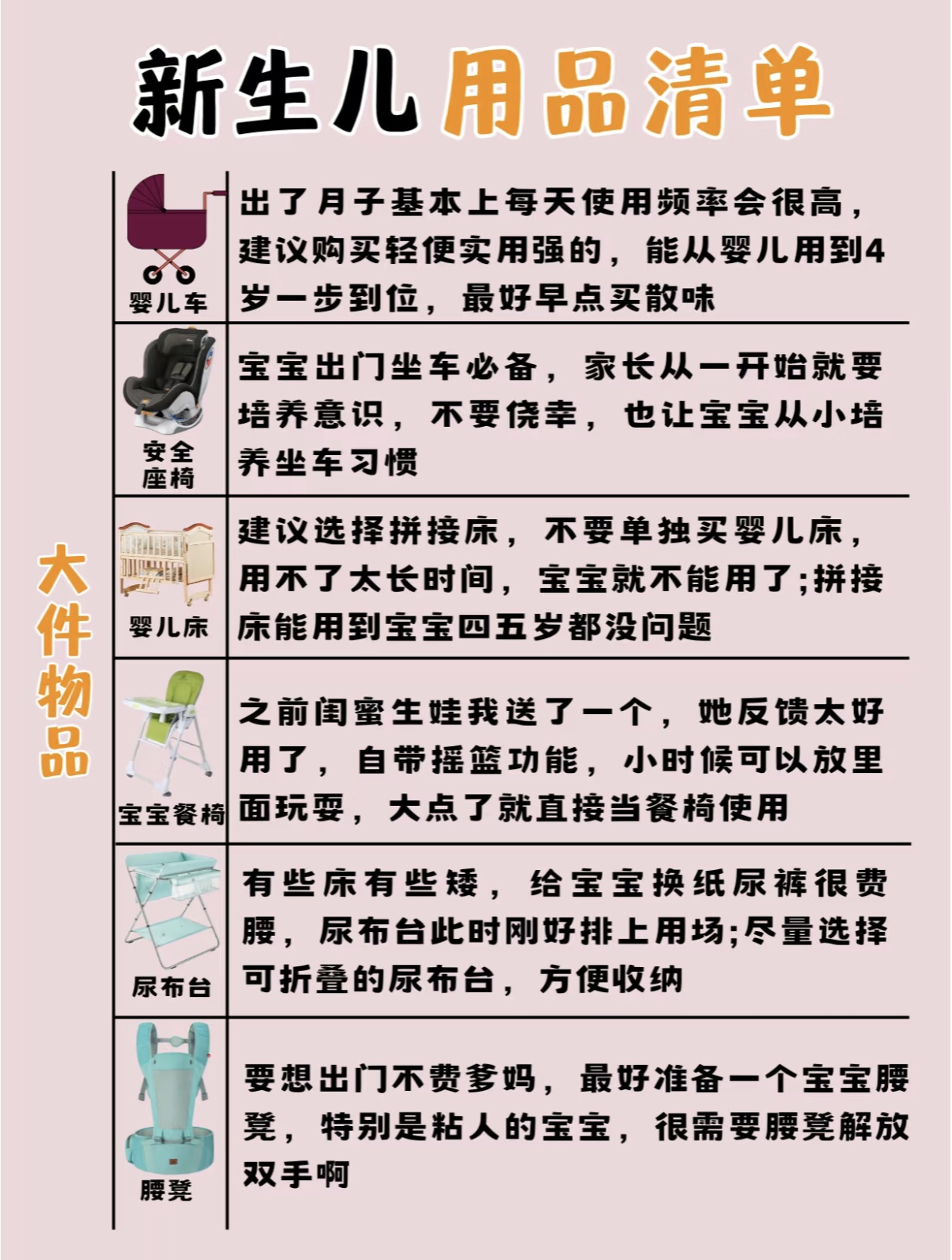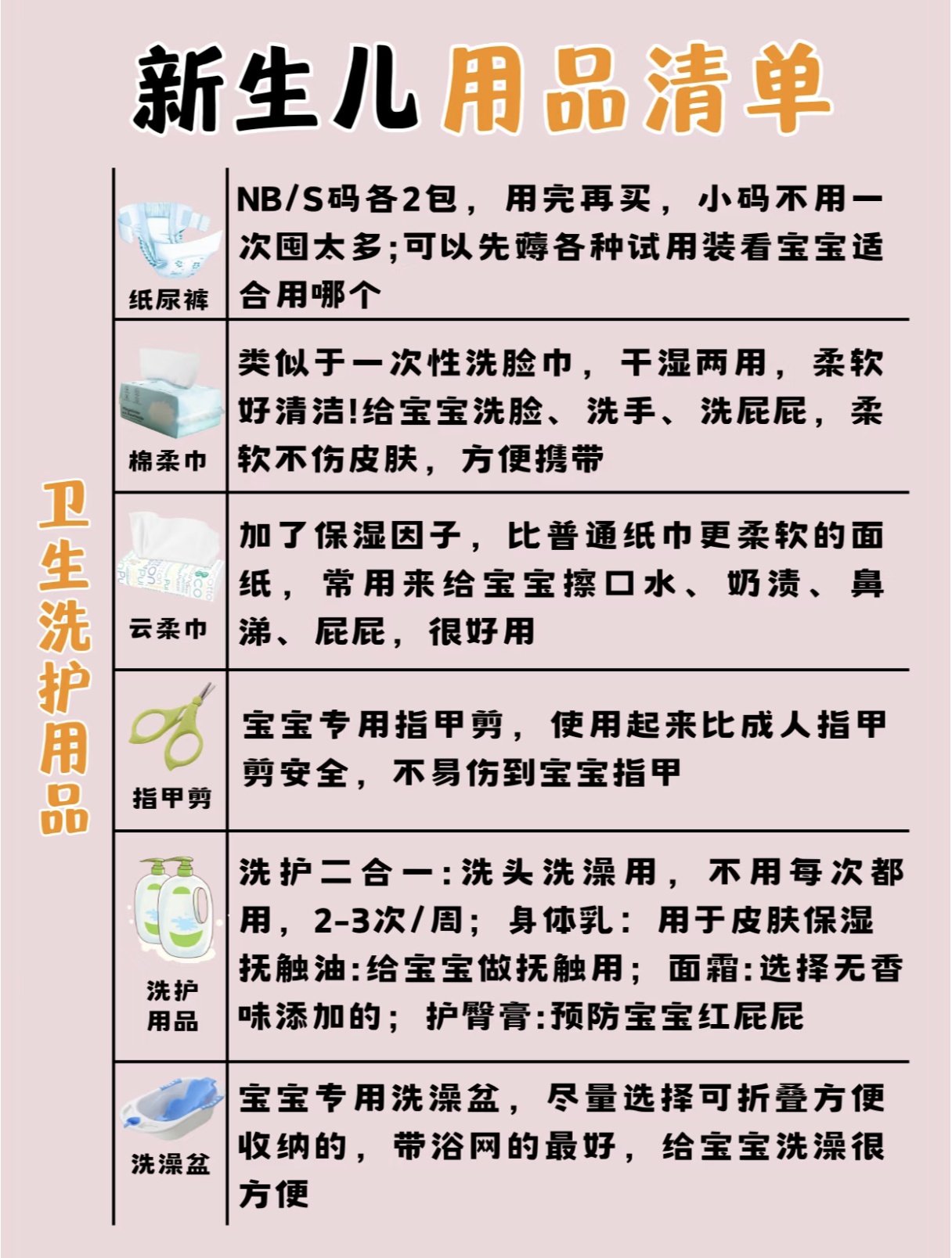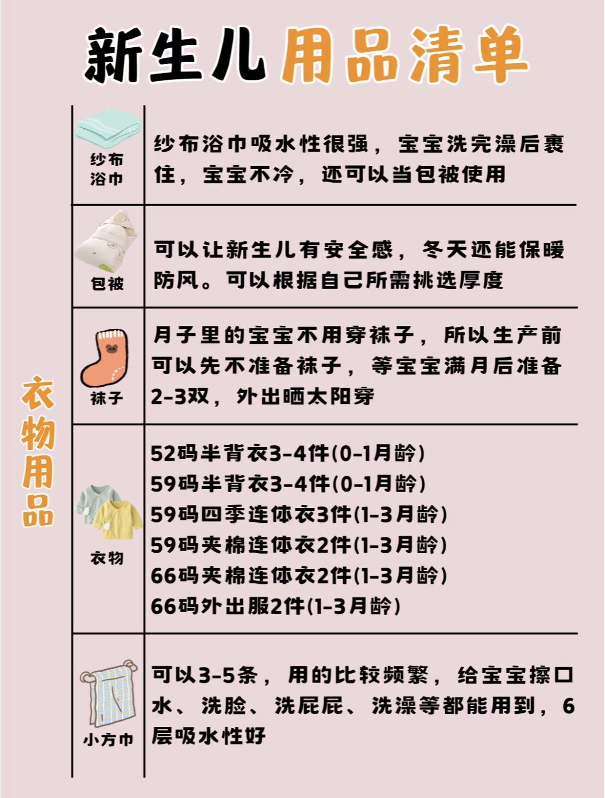 宝宝的东西更简单,别被商家忽悠买一堆。NB码的纸尿裤带一包足够,医院消耗快,买多了也是浪费。几件纯棉的和尚服或连体衣,再加两条包被,根据季节选厚薄就行。湿巾和棉柔巾备上,用来擦小屁屁和小嘴。至于奶瓶奶粉,除非医生有交代,不然少带,现在都提倡母乳喂养,带多了反而容易造成混淆。