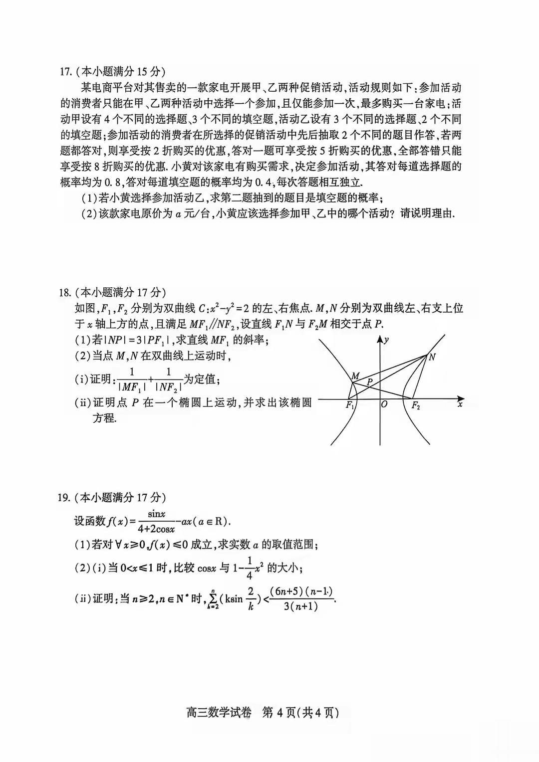解答题(共5题,77分)涵盖函数、立体几何、概率统计等内容。重点考查学生的逻辑推理和计算能力。