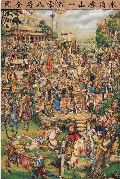 元末明初,施耐庵在参考宋元话本、杂剧及民间传说的基础上,结合自身对社会矛盾的深刻洞察,将分散的故事整合为一部连贯的长篇小说《水浒传》。他以文学重构的方式,将历史事件、民间传说与个人对社会现实的思考巧妙融合。在小说中,梁山好汉们因不同原因被迫走上反抗之路,他们来自不同的阶层,有着不同的背景和性格,但都因社会的黑暗和不公而汇聚于梁山,竖起“替天行道”的杏黄旗,建立起一个劫富济贫、平等互助的理想社会。然而,随着梁山势力的壮大,朝廷多次派兵围剿均以失败告终,但宋江始终心怀“忠君”思想,力主接受招安。梁山好汉被朝廷派去征讨方腊、田虎、王庆等起义军,虽立下赫赫战功,却伤亡惨重,最终以悲剧收场。