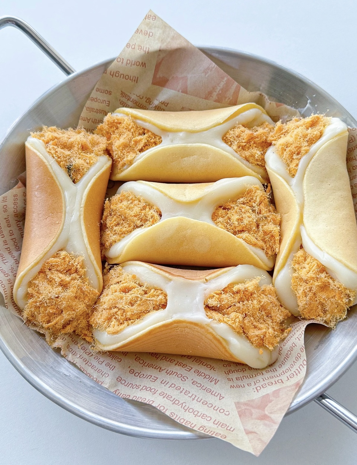 接下来是肉松秀场。推荐海苔肉松,咸香里带脆,和麻薯的软形成宇宙级反差。撒多少?看你家肉松罐的肚量,我一般是“一把不够再来一把”,直到看不见麻薯肤色为止。喜欢芝士的,此刻撕两片芝士片碎撒上,拉丝效果翻倍,热量也翻倍,但快乐会超级加倍!盖锅盖,小火焖3分钟,透过玻璃盖能看到面糊鼓小包,像对你在说“快吃我快吃我”。