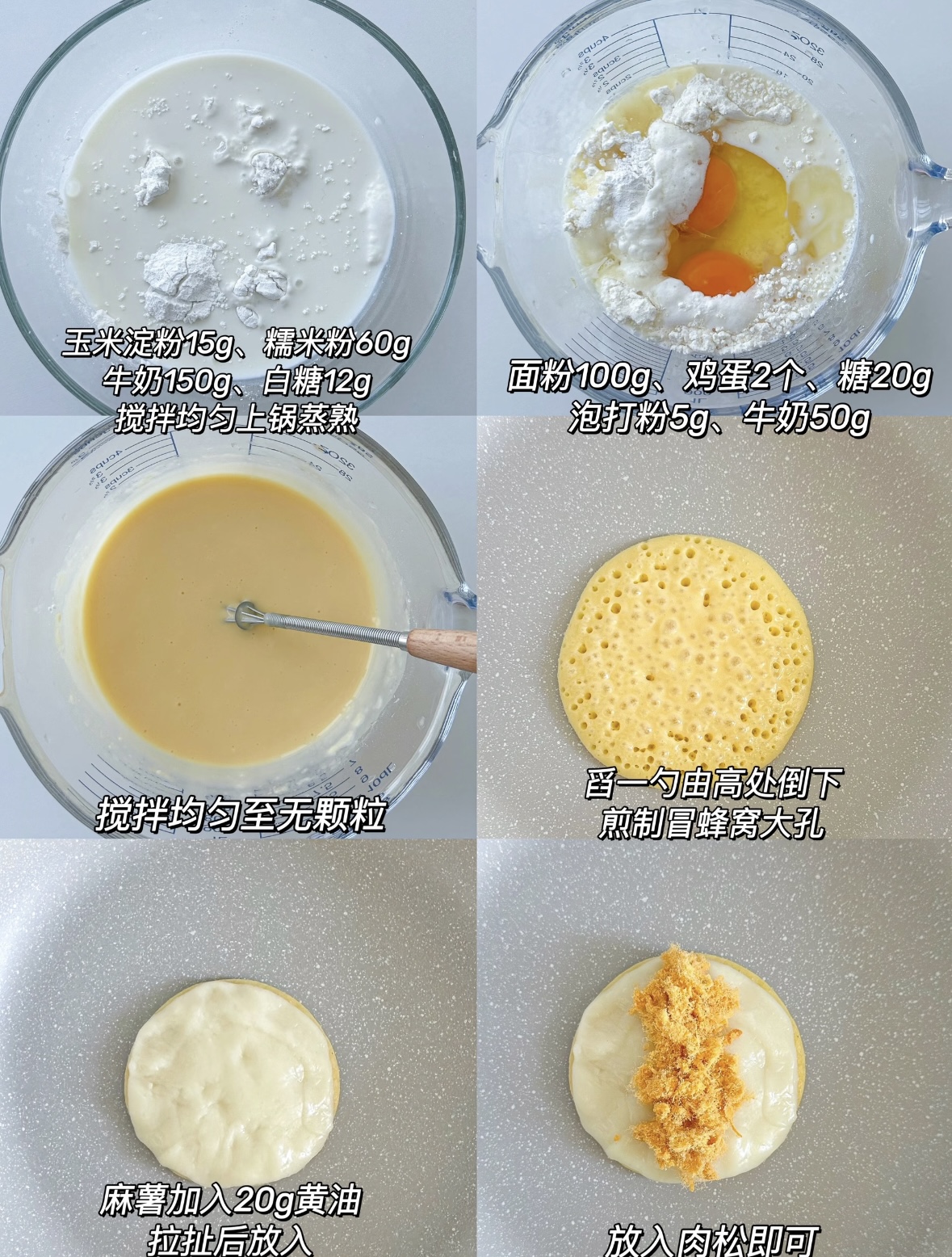 小贴士记好:1.麻薯预拌粉别买错成汤圆粉,包装上画着麻薯才是正主;2.全程小火!大火会让底部焦黑而中间没熟,别问我怎么知道的;3.肉松选油酥型,烤后更脆,普通肉松会受潮变“肉松饼”;4.想加馅料可劲造,巧克力、蜜豆、咸蛋黄碎,只要别超过总厚度1厘米,锅都能hold住。