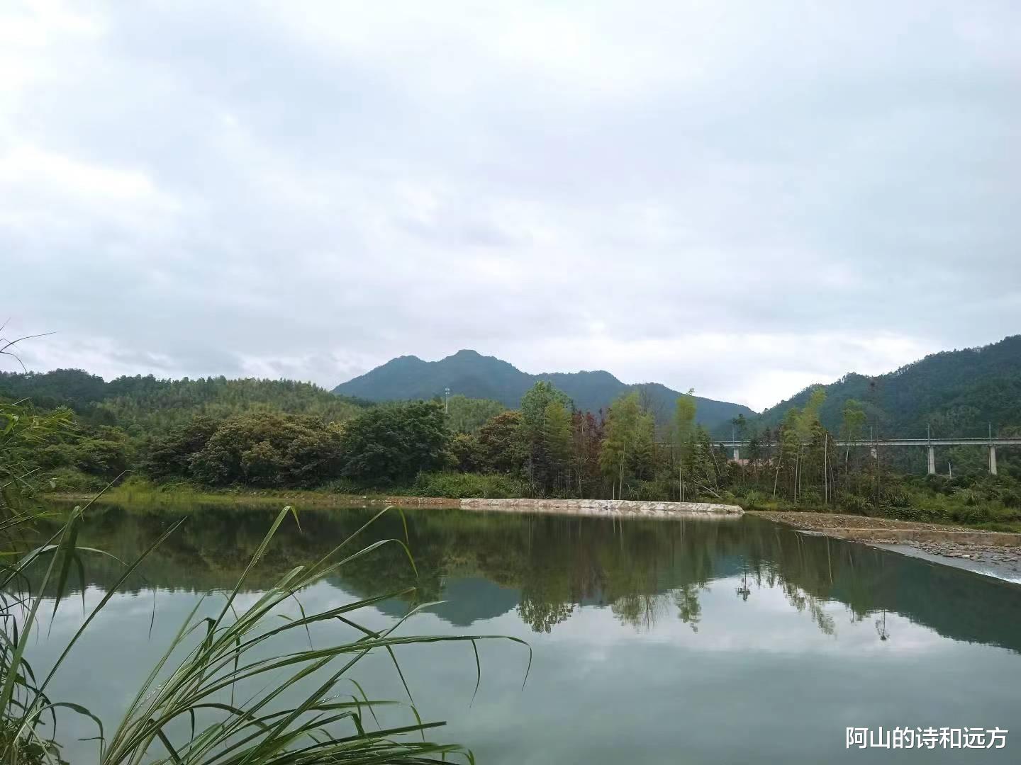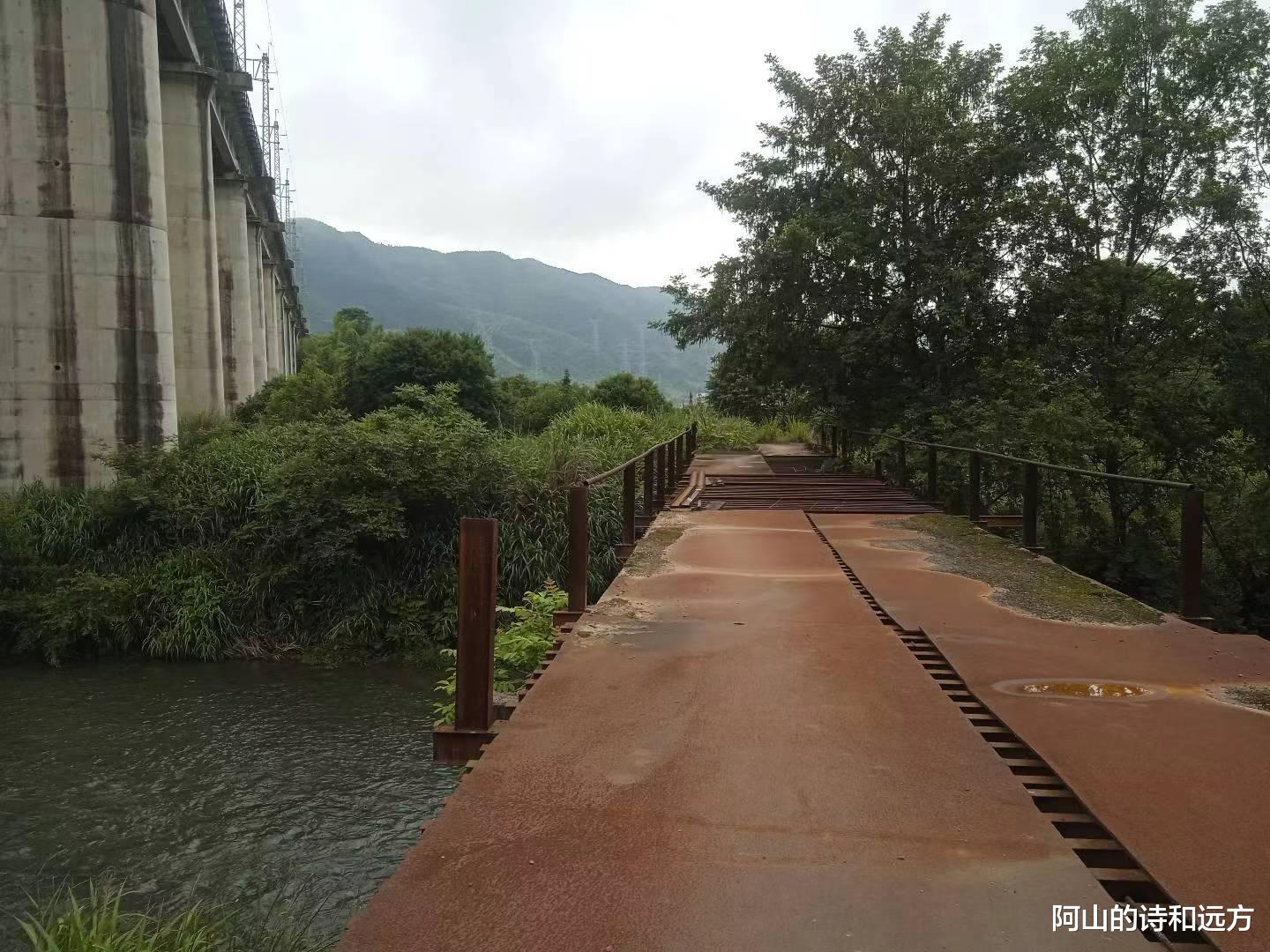 高架桥出现在山湾中,一面是静静流淌的小溪河,三面是起伏的山峦和葱茏的草木。