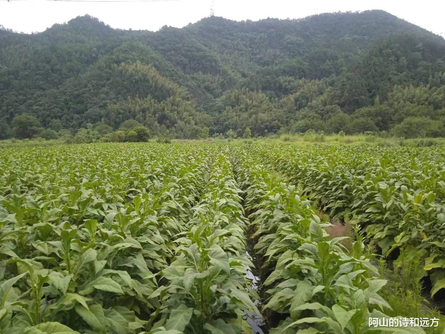 好大一片烤烟铺满视野,烤烟生长茂盛,像列队等待首长检阅的士兵,一色的碧绿,高矮胖瘦都差不多,排列整齐划一。作为经济作物,它们承载着村民无限的希望。