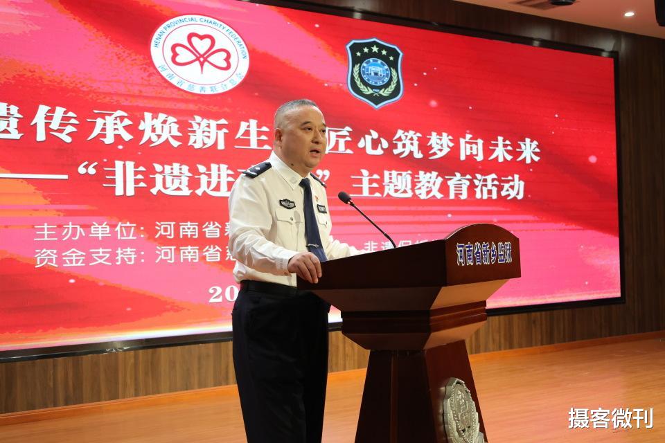 9月24日,河南省新乡监狱隆重举行了以“非遗传承焕新生 匠心筑梦向未来”为主题的“非遗进高墙”专题教育活动启动仪式。本次活动由河南省新乡监狱主办,河南省慈善联合总会·非遗保护发展基金提供师资支持。河南省慈善联合总会会长助理兼秘书长杨吉中、河南省监狱管理局教育改造处处长余甫仁、河南省新乡监狱党委书记、监狱长王宏光、河南省摄影家协会副主席、河南省慈善联合总会·非遗保护发展基金管委会主任吴玮等相关领导出席活动并致辞,河南省新乡监狱主要负责同志、职能科室、监区干警及120余名服刑人员代表参加活动,活动通过电教系统全狱直播。