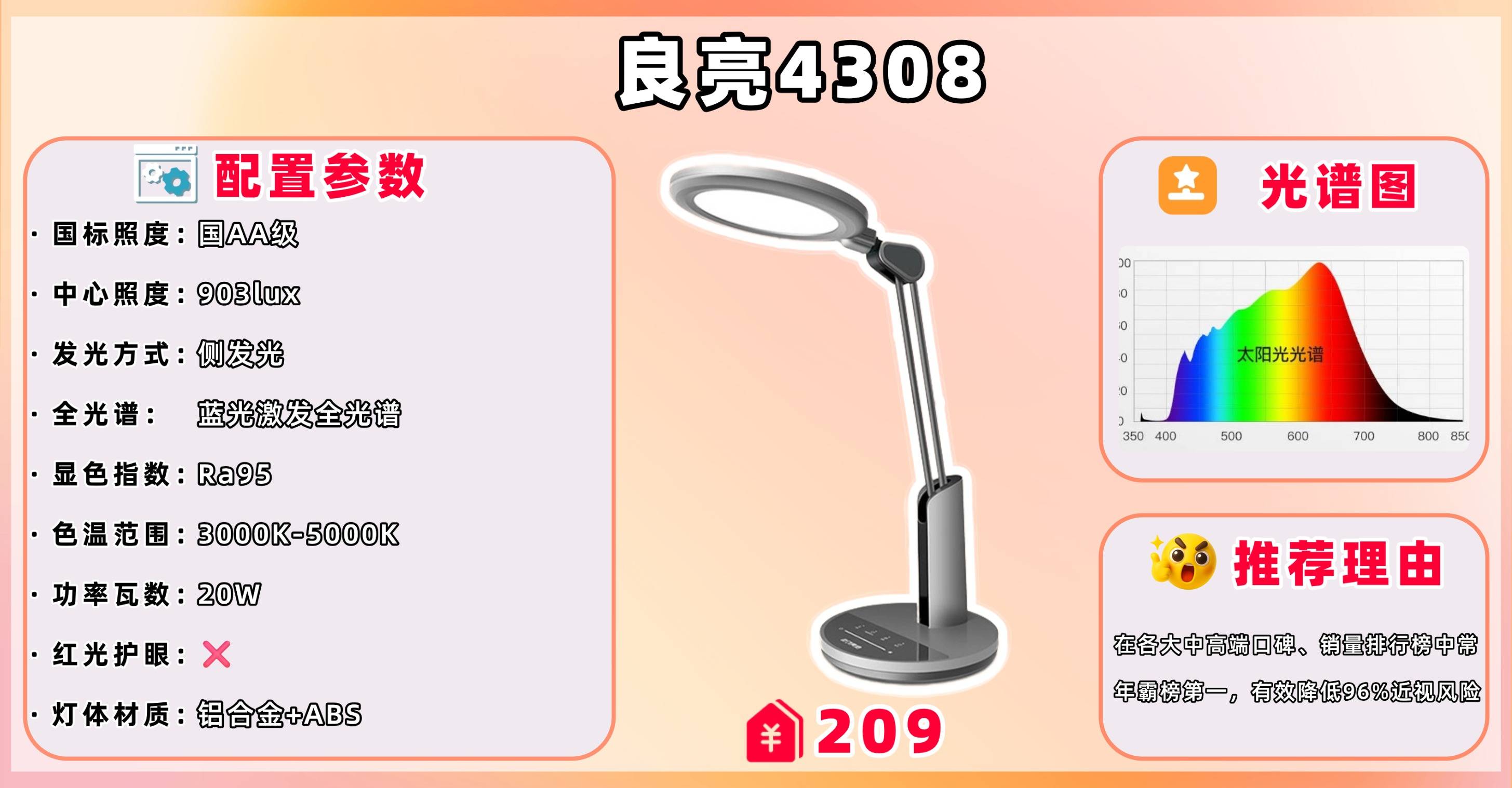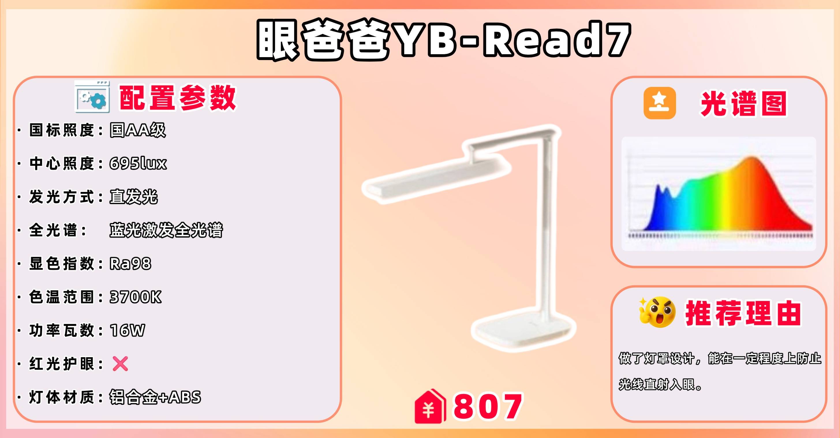 除了上面我们说的低蓝光护眼外,"红光养眼"的重要性也不容忽视。相比于其他光谱,具备有益红光对眼睛的刺激较小,更有利于眼睛的舒适度和健康。缺少红光会导致眼睛疲劳。因此,降低蓝光辐射,补充红光成为了当下护眼台灯设计的重要考量之一。通过控制光源的光谱,选择低蓝光、高红光的光源,可以有效减少对眼睛的刺激,提高视觉舒适度,有助于长时间使用时的眼睛舒适感和健康。