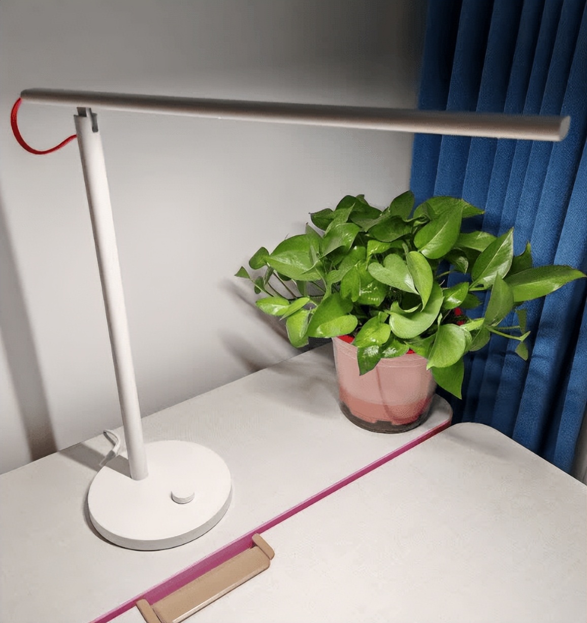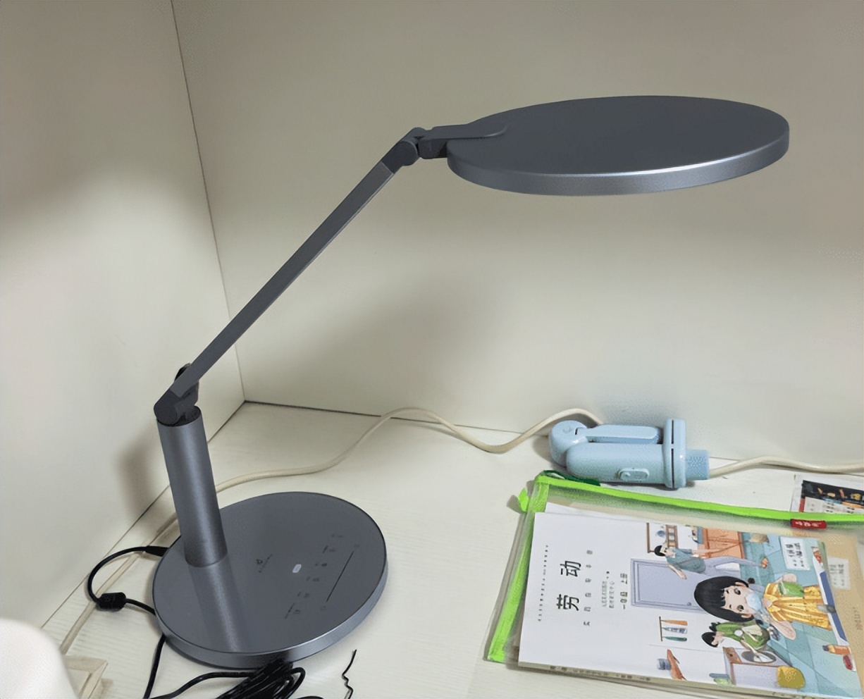 在外观款式上,看上去挺简约好看的,但有一点就是底盘有点大,在小书桌上显得占地面积大。在材质上用的是合金和ABS,整体都摸起来也比较有质感。在功能上有小夜灯模式,晚上使用很贴心。