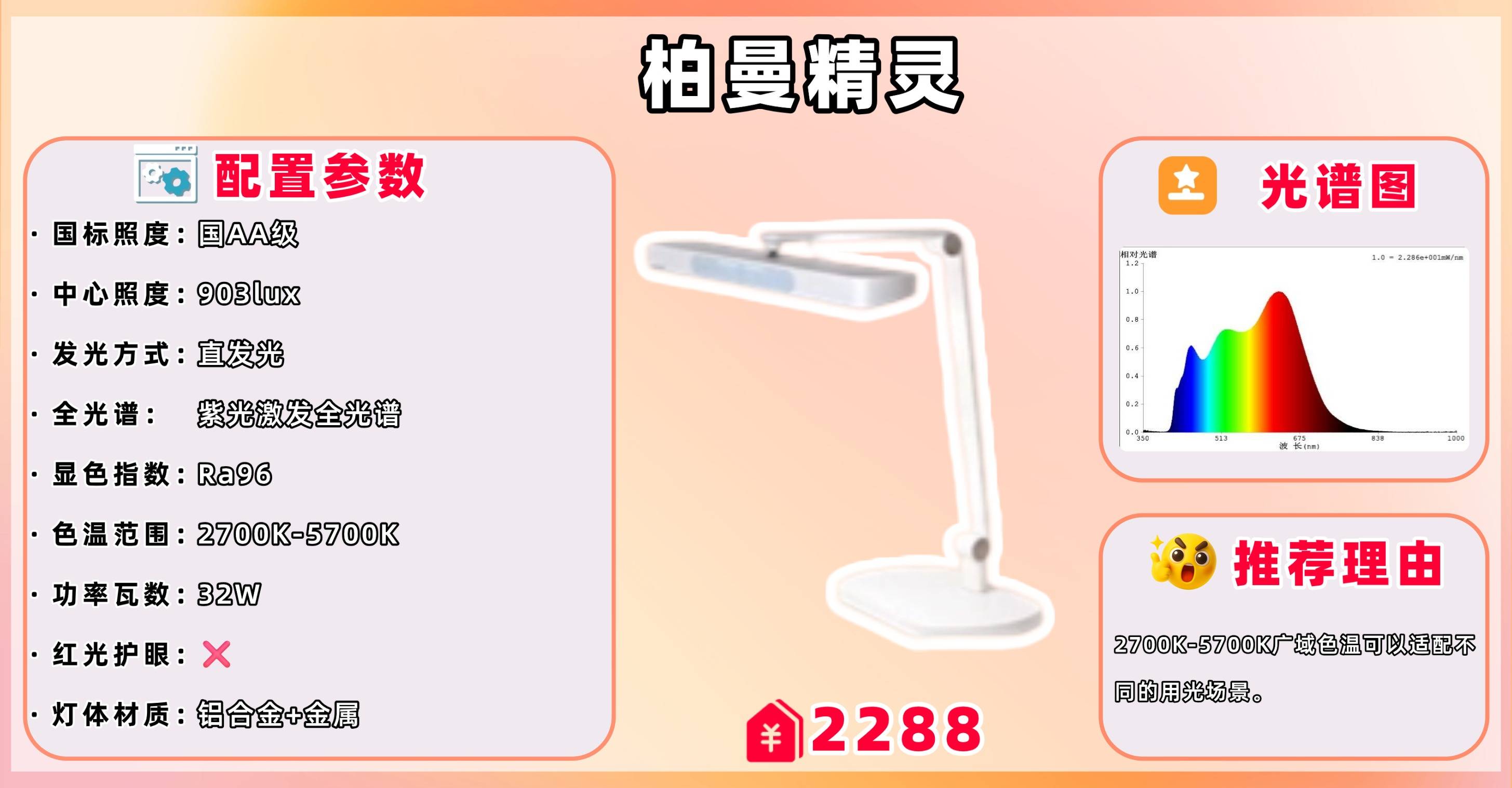 推荐理由:2700K-5700K广域色温可以适配不同的用光场景。