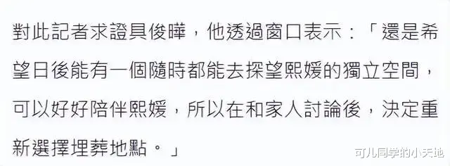 具俊晔则是提出了不同的意见,表示还是得给大S的骨灰找到一个实体的安葬的地方,这样以后想念大S的时候,也不至于无处可去。