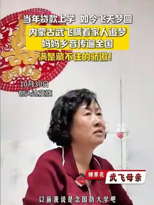 武飞妈接受采访时说,儿子读书花了很多钱,但他追求的是为国争气。这句话说得真好。多少普通家庭,为了一个梦想,省吃俭用,倾其所有。我爸妈当年为了供我上大学,也是节衣缩食。现在想想,真的不容易。