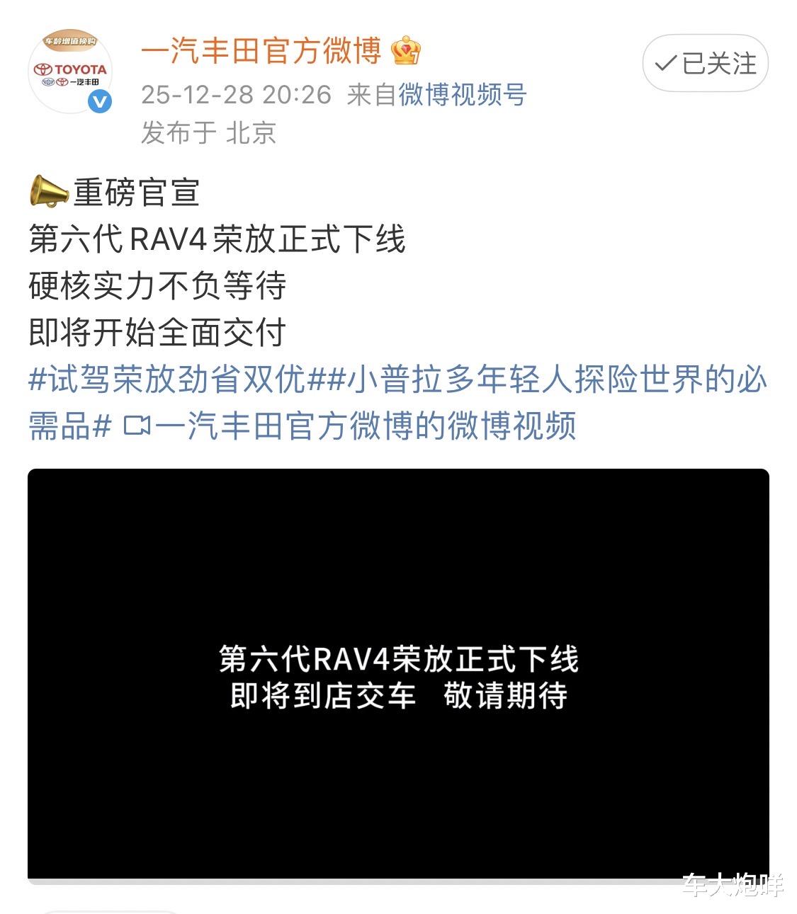 日前,一汽丰田官方宣布,旗下紧凑型SUV——全新丰田RAV4荣放现已正式下线,即将开启全面交付。全新丰田RAV4荣放属于家族第六代产品,已于11月21日公布售价,提供6款车型,官方指导价16.98万-22.88万元。