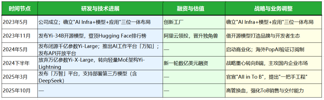 公司承载着李开复打造全球竞争力大模型的初心,起步时亦曾与同行竞逐参数规模。然而,无限制堆砌参数的路径很快被证明难以为继。随之而来的,是一系列务实的战略转向:在模型策略上,不再执着于自研基座,转而拥抱“开放模型”;在产品方向上,亦放弃了对To C超级应用的幻想,最终“放下身段”,全面转向To B战场,并提出“一把手工程”,通过直接对话企业最高决策者,以深度定制推动AI落地。