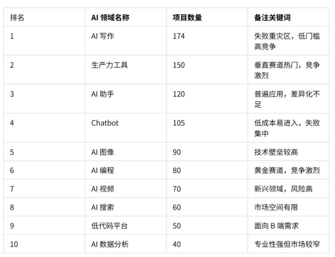在AI的赛场,几乎每个领域都“尸横遍野”。从AI写作、文生图、文生视频,到低代码平台、各类垂直Agent应用——无一幸免。技术门槛低的,参与者多,竞争惨烈;技术门槛高的,则开发成本高,市场容量有限。而那些看似前景好的新兴赛道,往往在创业者们的自嗨中与市场需求脱节。总之,各有各的“死法”。