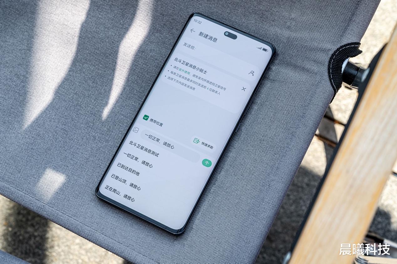 不仅如此,长按机身左侧的畅享X键就可以一键进入北斗卫星消息界面,即便手机没有地面信号的支持,也能和外界通信,并且还可以生成多点位置轨迹地图,分享和记录行进路线。