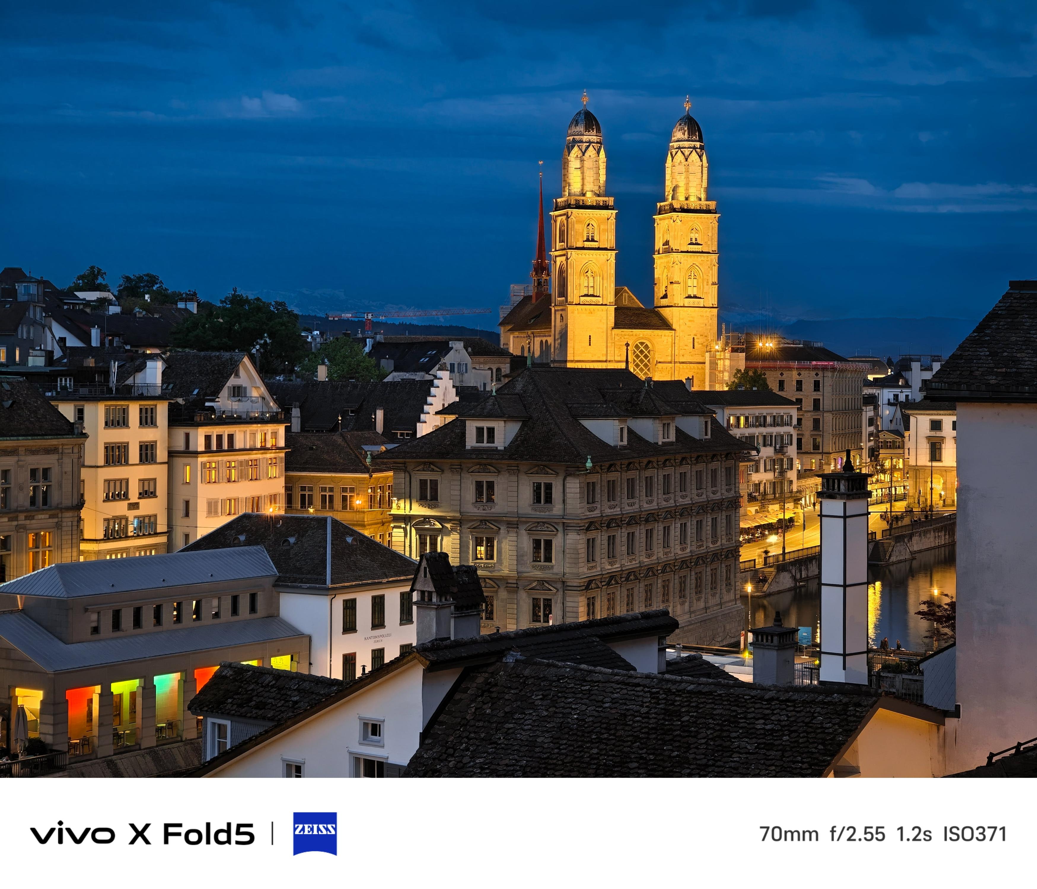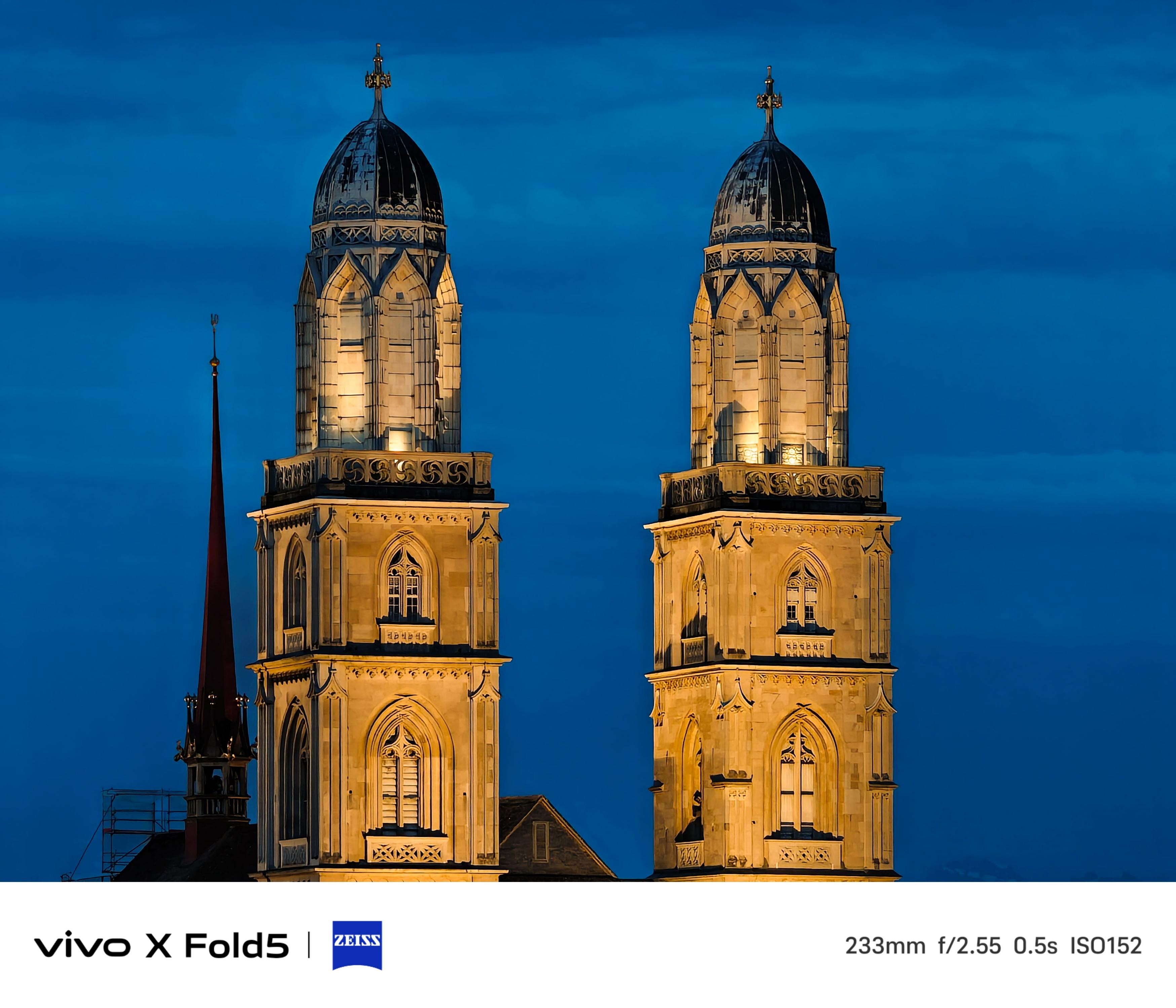 vivo X Fold5采用了5000万蔡司超级长焦、5000万超感光VCS仿生主摄、5000万超视超广角镜头,共同组成专业后置三摄影像系统。其中,vivo X Fold5在长焦端的影像升级值得关注,这颗潜望镜头的对焦性能大幅提升,面对移动中的物体或者微小细节也可以实现快速对焦,显著提升成片率。同时这颗潜望镜头还具备出色的夜景成像表现,暗光环境下也能捕捉到更多光线,确保高清还原的成像画质,长焦镜头也在更多场景中具备了可用性。