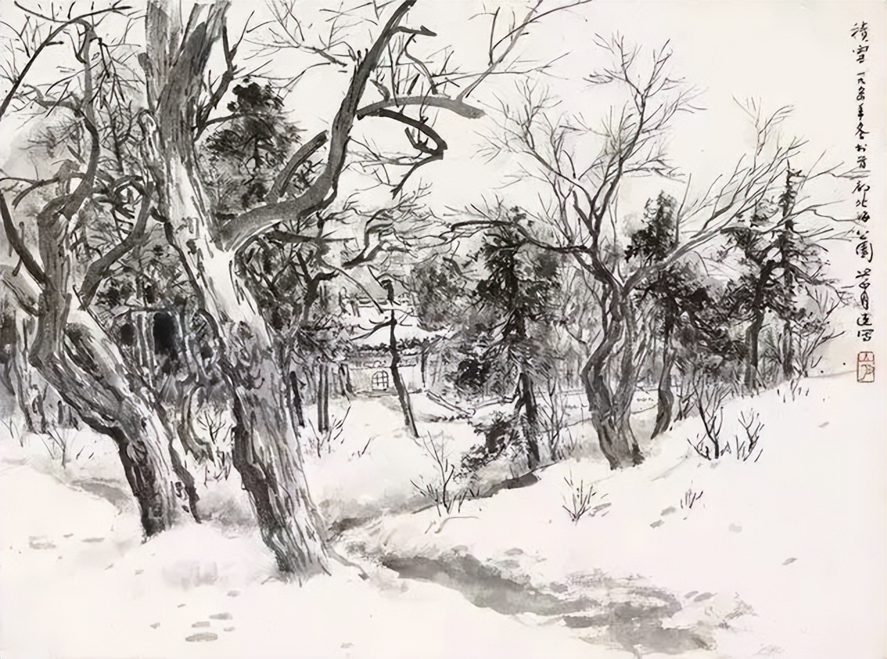 他常常带领学生深入生活,到农村、工厂、矿山写生,让学生从现实生活中汲取创作灵感。他告诉学生:“艺术不是空中楼阁,只有扎根生活,才能创作出有温度、有力量的作品。”在他的影响下,一批又一批优秀的美术人才脱颖而出,成为中国美术界的中坚力量,为岭南画派的传承与发展注入了新的活力。1978年,关山月任广东画院院长,期间创作了《井冈山罗浮水库》《红土育新苗》《革命摇篮井冈山》《雨后山更青》等作品,并参加“广东画院习作展览”。这些作品延续了他“笔墨随时代”的创作理念,以井冈山等革命圣地为背景,既缅怀了革命历史,又展现了新时代革命老区的发展变化,让红色文化通过国画艺术得以传承与弘扬。