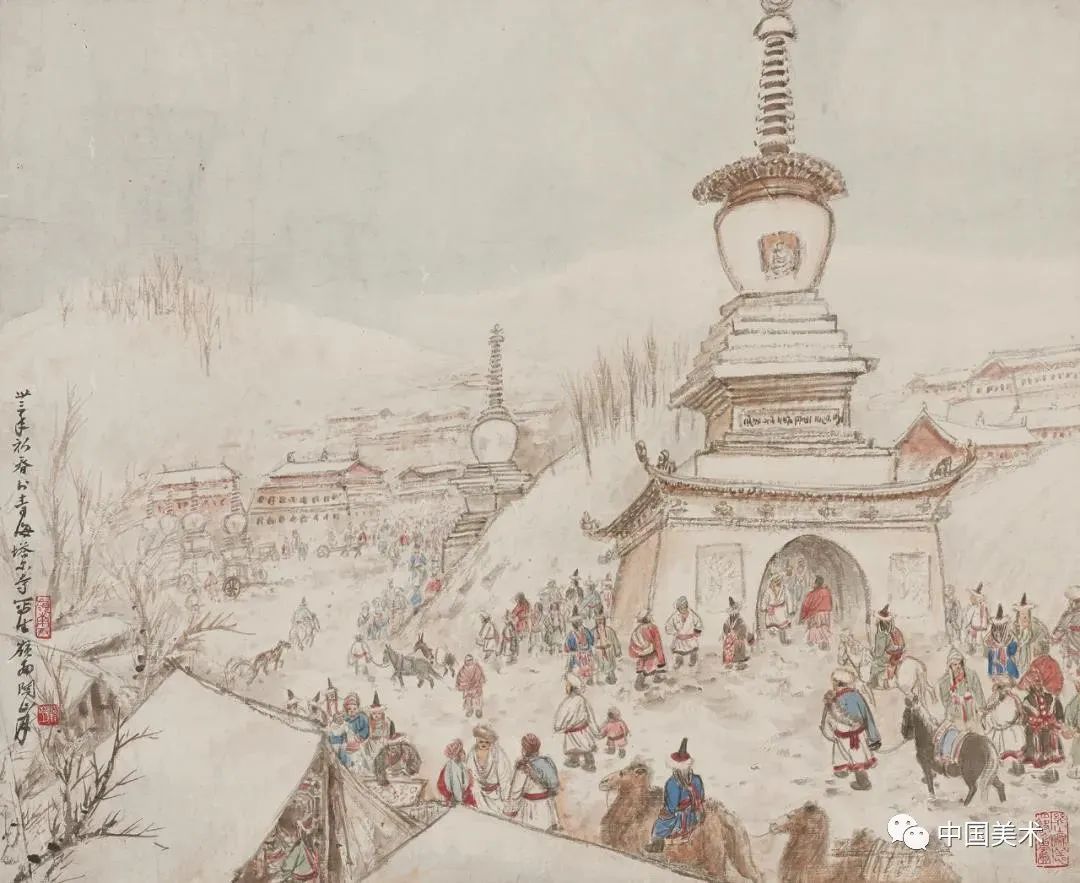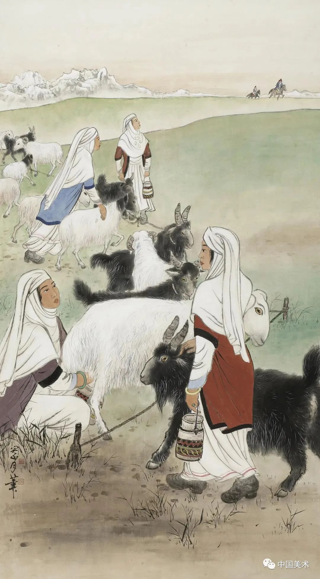 1946年,关山月在广东文献馆举行“西南西北纪游画展”,其作品《祁连放牧》更是代表中国参加了联合国在巴黎举行的教育展览。这幅画以西北祁连山为背景,描绘了牧民在草原上放牧的场景,画面开阔雄浑,色彩浓郁鲜明,既展现了中国西北独特的自然风光,也传递了中国人民对和平生活的向往。在当时的国际背景下,这幅画不仅向世界展示了中国国画的艺术魅力,更让世界看到了中国人民在历经战乱后对美好生活的追求,成为中外文化交流的重要桥梁。