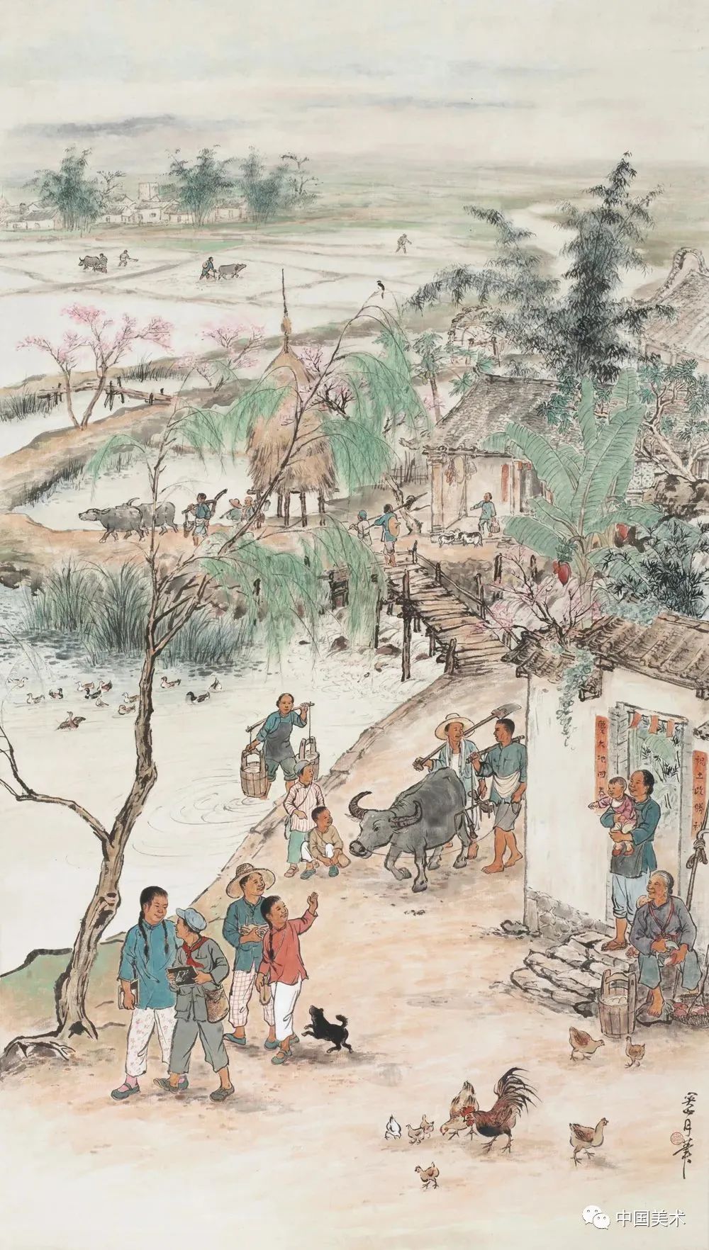 新中国的成立,为关山月的艺术创作开辟了全新的天地。他深知,时代变了,艺术也必须随之革新,要以笔墨描绘新中国的建设风貌,展现人民群众的劳动热情与精神面貌。1950年,他任华南文艺学院教授、美术部副部长,创作了《新开发的公路》《山村跃进图》《进攻海南岛》等作品。这些作品题材新颖,充满了时代气息,打破了传统国画题材的局限,将工业建设、农业发展、革命历史等全新内容纳入国画创作范畴。