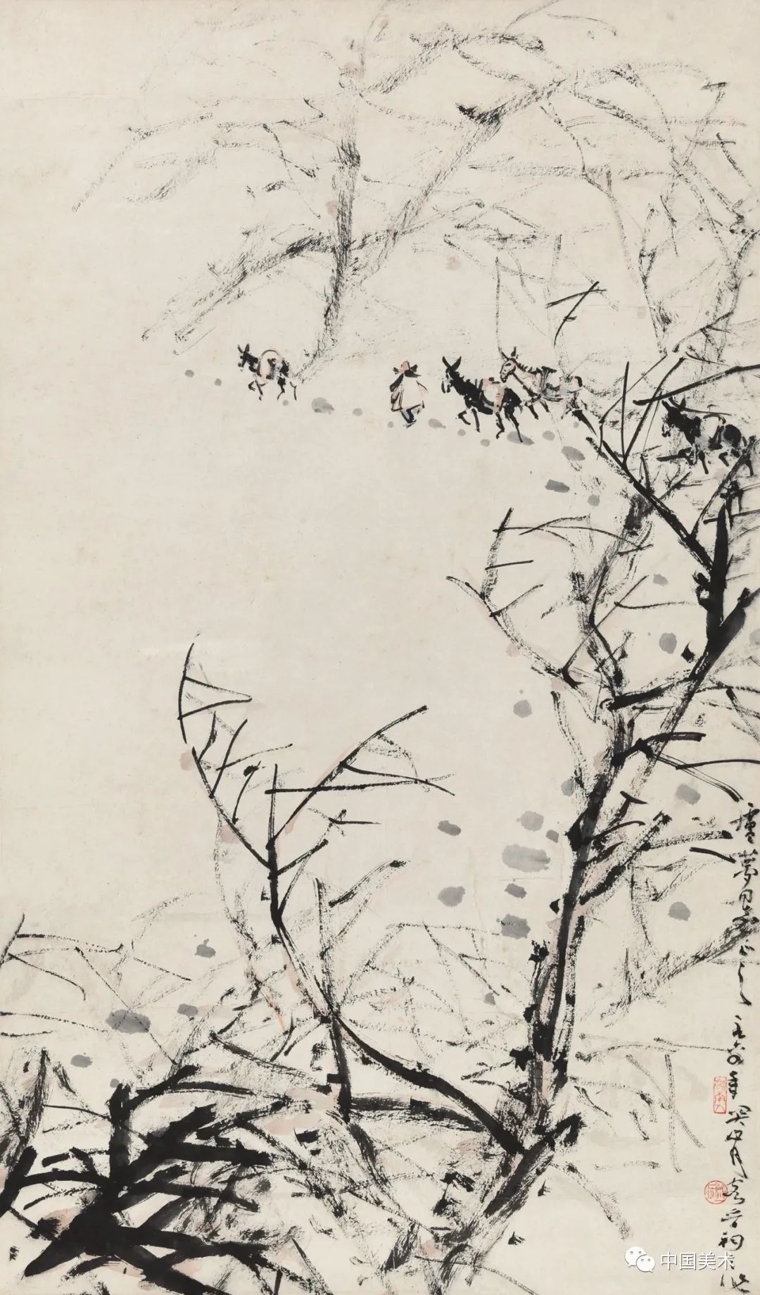 如果说“春睡画院”的学习为关山月打下了艺术根基,那么时代的洪流则让他的作品有了更厚重的家国情怀。20世纪40年代,抗日战争爆发,国家危难之际,关山月没有选择躲在画室中逃避现实,而是拿起画笔,以画为戈,投身到抗日救亡的洪流中。1941年,他在桂林举办第二次画展,随后又赴成都、重庆、贵阳等地举办“抗战画展”。在这些展览中,他的作品不再是传统文人画中孤高清逸的山水,而是充满了对民族苦难的同情、对侵略者的愤慨以及对家国的热爱。