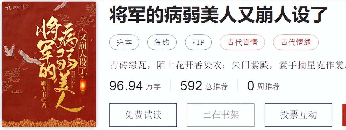 №【2022.11.03】完本古言推荐:《将军的病弱美人又崩人设了》《团宠医妃打卡续命》《穿越后,我被竹马拖累成了皇后》每一本都好看~
