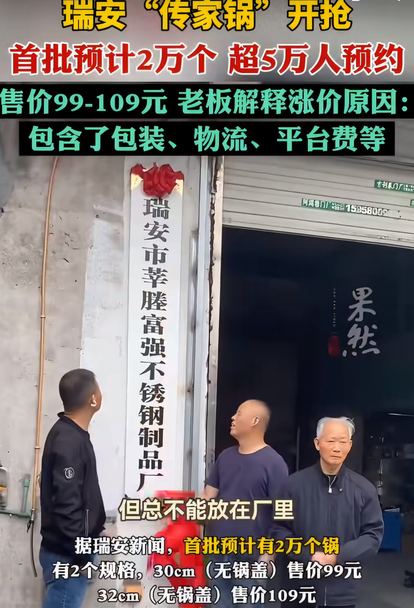生产这口锅的瑞安市莘塍富强不锈钢制品厂,原本已经停产十几年。可面对这波“泼天的流量”,当地政府直接开启“保姆式服务”:经信部门协调设备,市场监管提前介入质检,应急管理连夜检查消防……连老员工都从别的厂赶回来帮忙。主理人傅克萍带着团队,把当年的手工捶打工艺复刻到机械生产里,锅体厚度从0.8毫米升级到1.1毫米,锅柄焊接从氩弧焊改成激光焊,连干烧40分钟都不变形。可即便如此,他依然在预售前公开成本账:原料、包装、人工、税费全算上,一口锅成本93到97元,最终定价99元起,毛利不到10元。网友们直接炸锅:“这价格是来做慈善的吧?”“老板,求你涨点价,别亏本!”