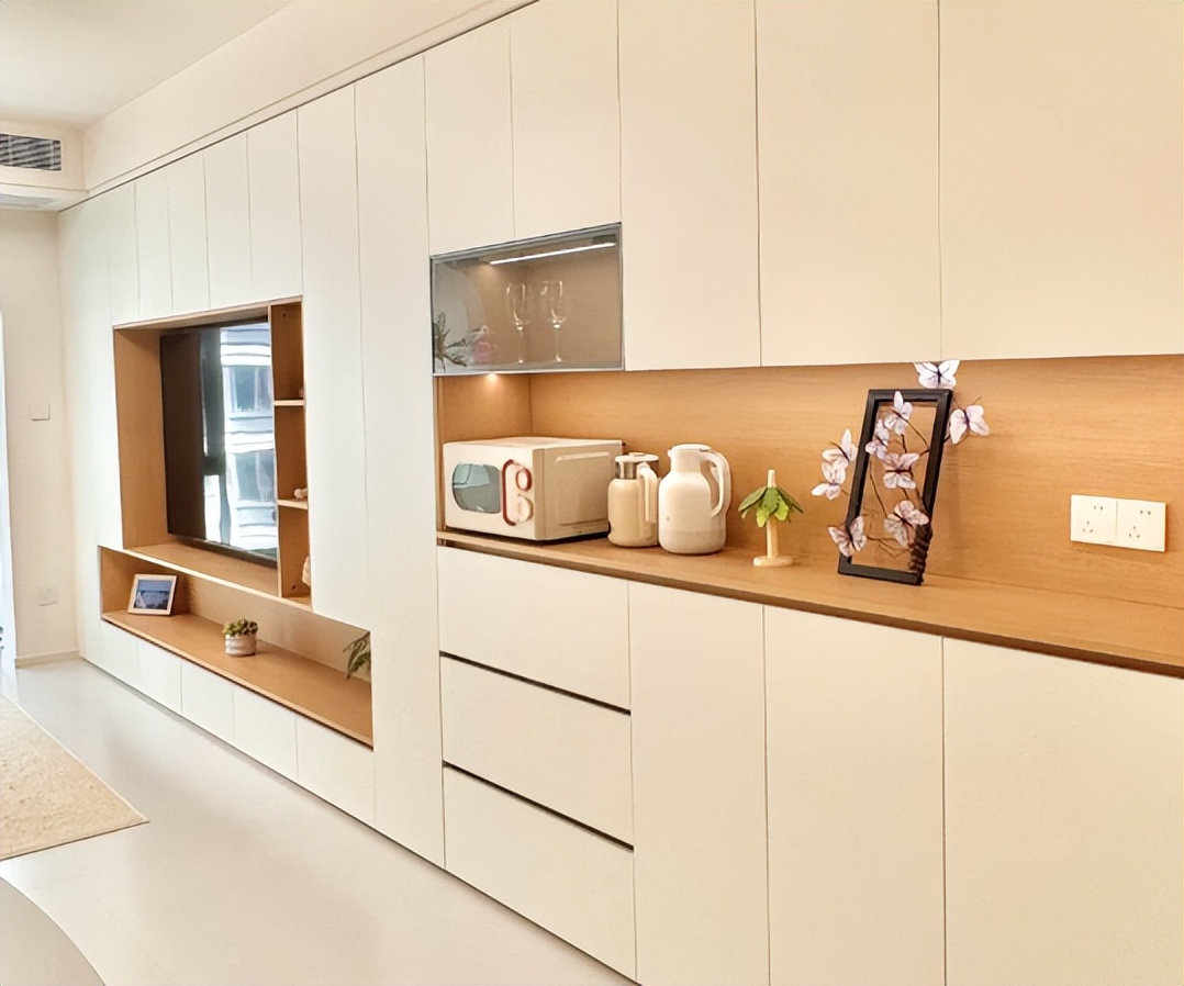 家里面只要是去做柜子,就要选择封闭式的柜子,喜欢去放装饰品或者装饰物,尽量去选择玻璃柜门,美观好收拾,不用担心藏污纳垢。