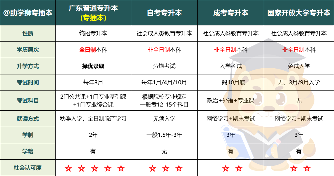 所以“广东专插本和专升本的区别”,要先搞清楚专插本是要和哪个专升本考试进行比较: