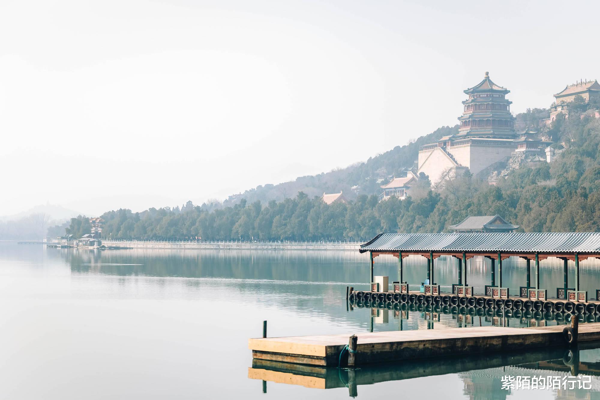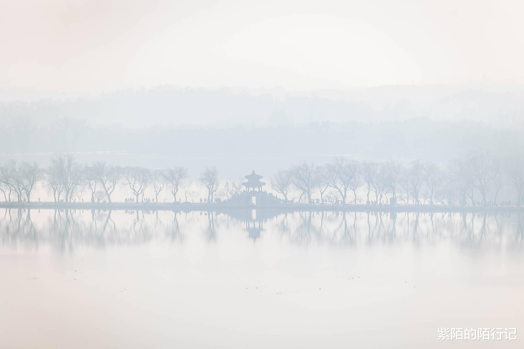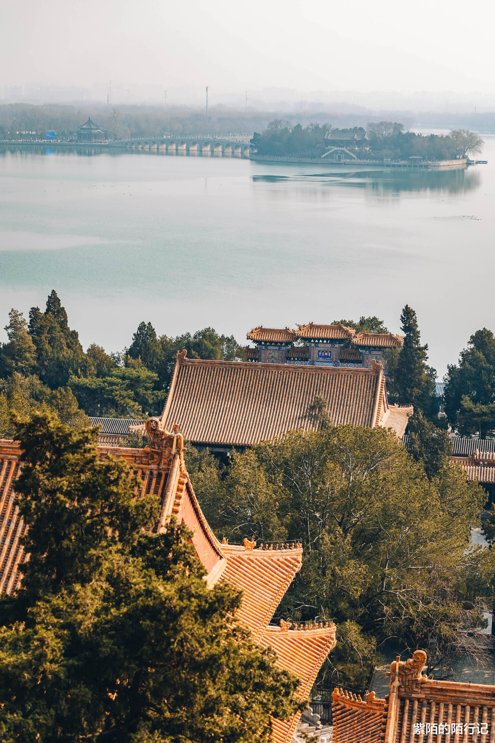 浩大的昆明湖有些氤氲之感,十七孔桥、西堤,乃至更远的宝塔、群山在这片氤氲之中,竟颇有些江南烟雨的感觉。