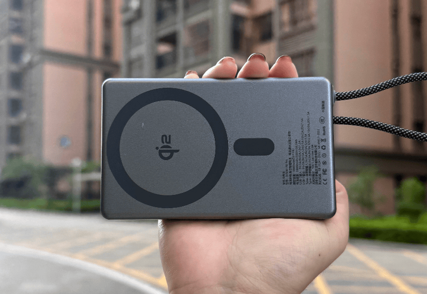 配置方面也挺实用,10000mAh 的容量,额定容量 6000mAh,日常通勤给手机充个一次多完全够用。22.5W 的主流功率,应付日常补电速度不拖沓,应急回血很省心。支持磁吸 + 自带线双模式充电,随手一贴就能磁吸快充,忘带线也能直接用自带线充,不用额外折腾;LED 灯还能直观判断剩余电量,不用瞎猜。不过有个小细节得提一嘴,自带线的长度比较固定,有时候想边充电边拿远一点用手机,会觉得线有点受限,稍微有点不方便。